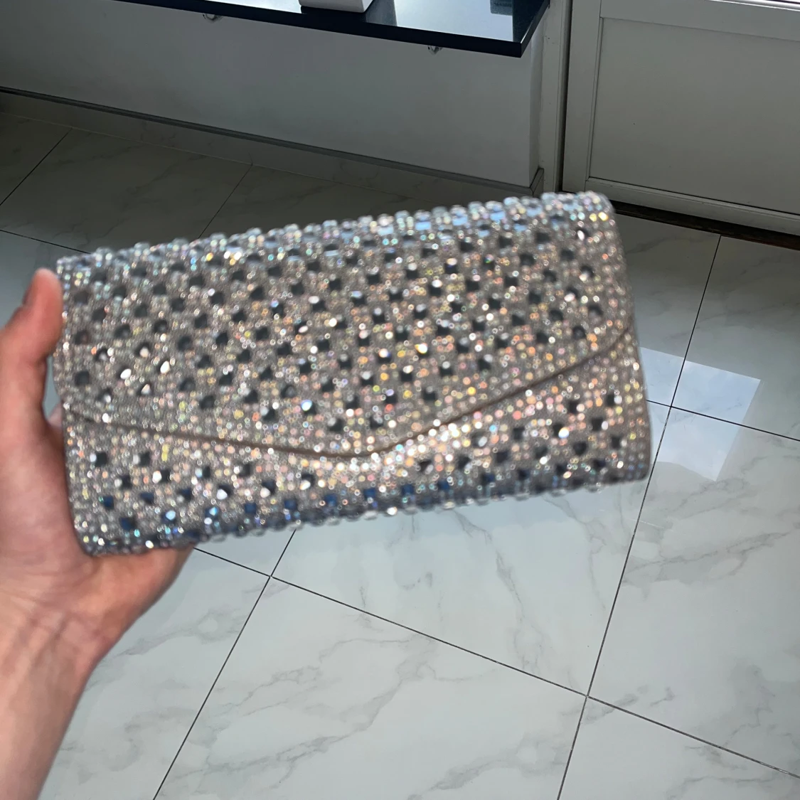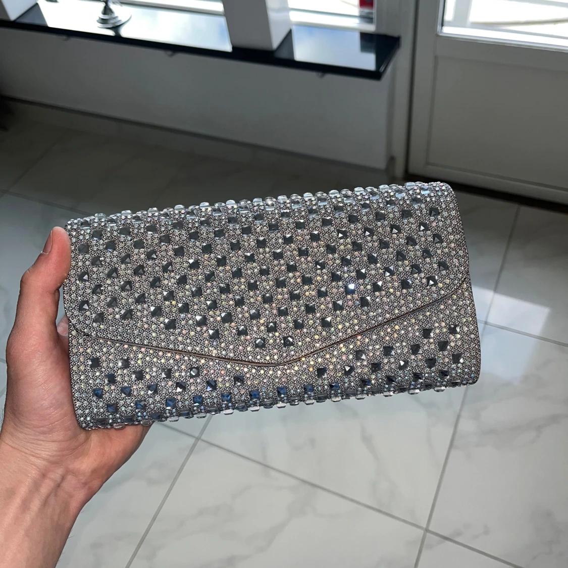 Hej säljer denna fina neccessär som funkar till flera tillfällen. Den är i bra skick och säljs väldigt billigt. Neccessären är silver med små diamanter på och är perfekt för fest och bröllop. Först till kvarn!