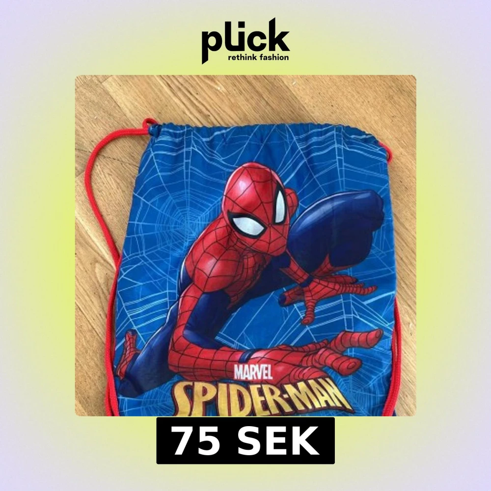 Cool blå ryggsäck med Spider-Man-tryck från Marvel. Väskan har röda snören och ett stort motiv av Spider-Man på framsidan med spindelnätsmönster i bakgrunden. Perfekt storlek för gympakläder eller utflykter. Materialet är lätt och syntetiskt.