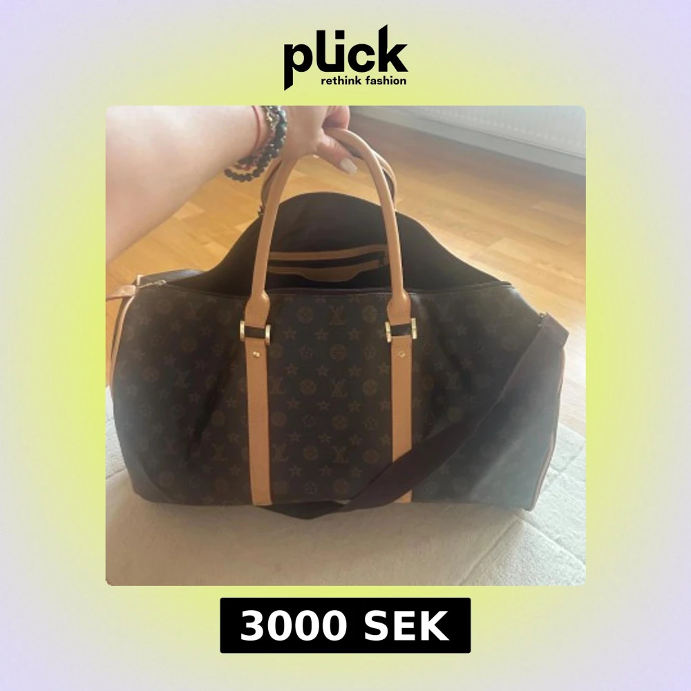 Stilren och rymlig resväska i klassiskt monogrammönster. Väskan är brun med ljusbruna detaljer och handtag i skinn, samt axelrem. Invändigt finns en praktisk ficka med dragkedja. Perfekt för weekendresor och när du vill resa med stil.