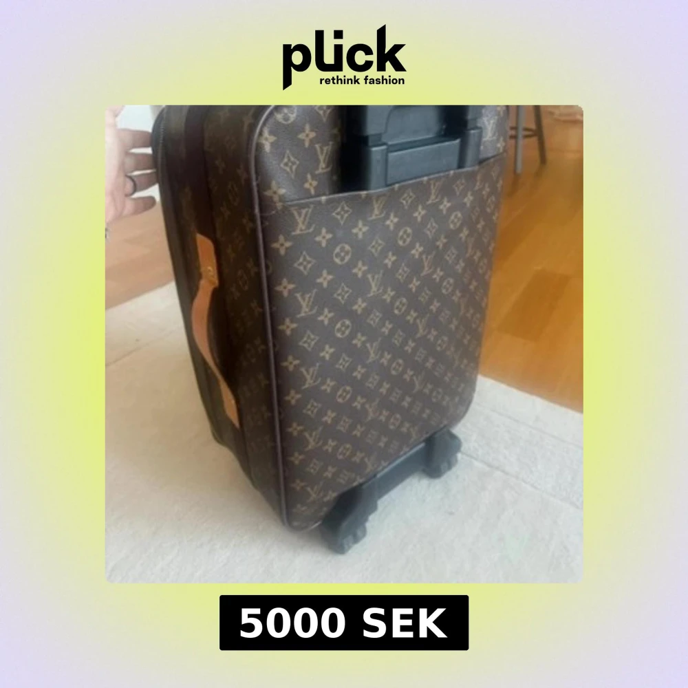 Lyxig resväska från Louis Vuitton i klassiskt monogrammönster. Väskan är brun med ljusbruna detaljer och har dragkedja, hjul och utdragbart handtag. Tillverkad i slitstarkt skinn och syntet, perfekt för dig som vill resa med stil.