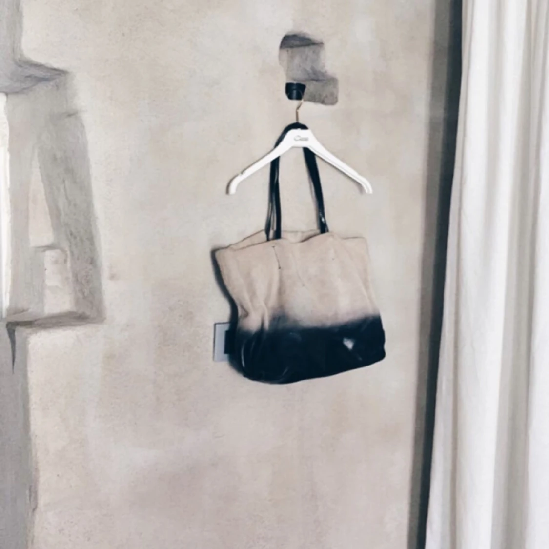 Fadead väska i svart läder längst ner och beige mocka där uppe! Köpare står för frakt