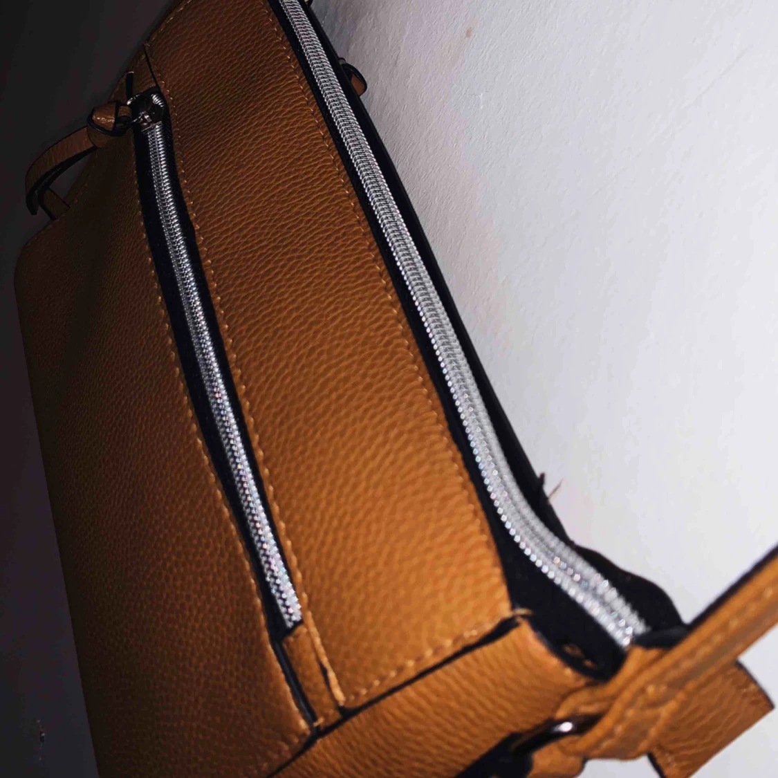 Gul crossoverväska men justerbart axelband. Fungerande dragkedjor och flera fack. Fler bilder kan skickas och frakt ingår ej.
