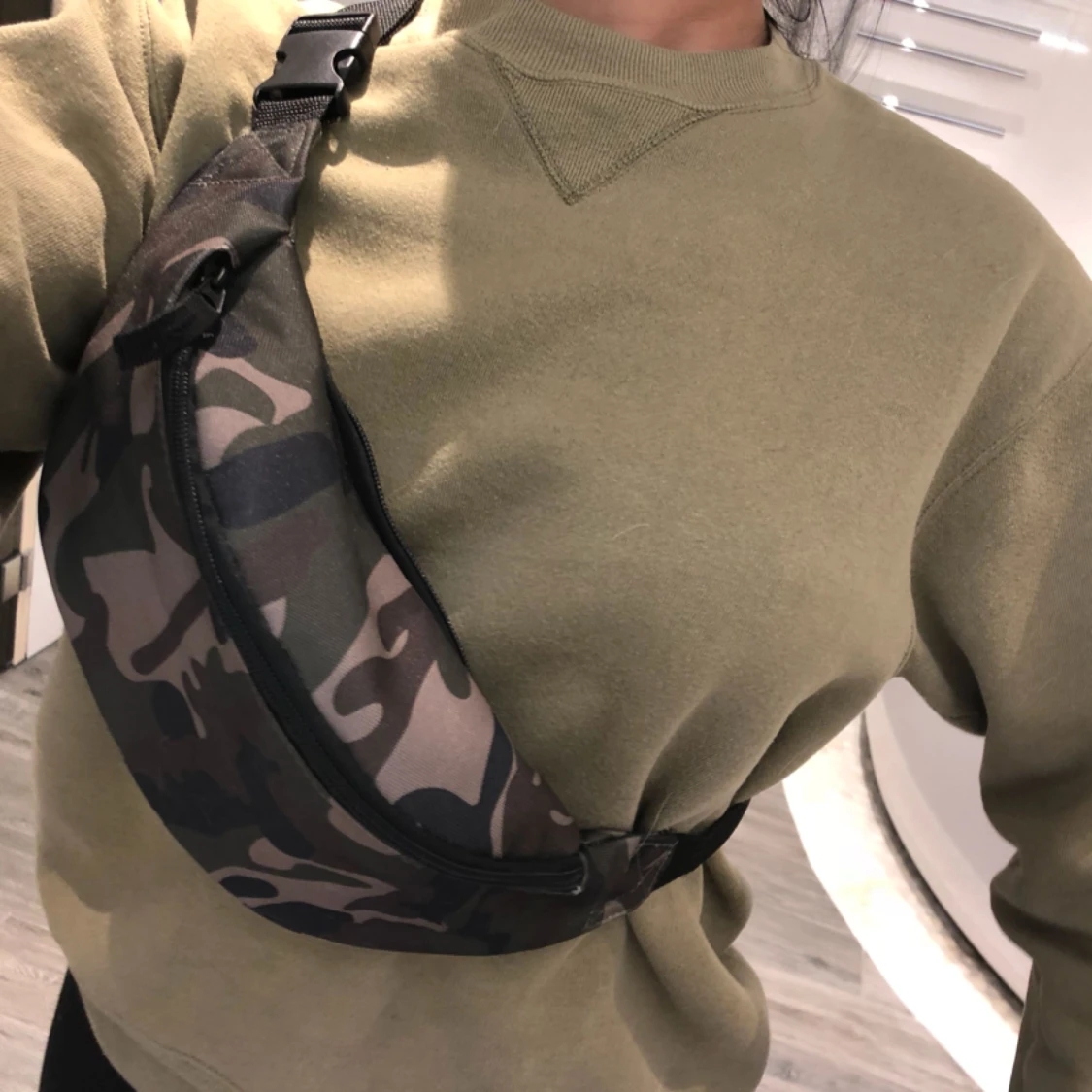En supersnygg magväska i armyprint som har 2 fack som går att justera i storlek. Helt ny.