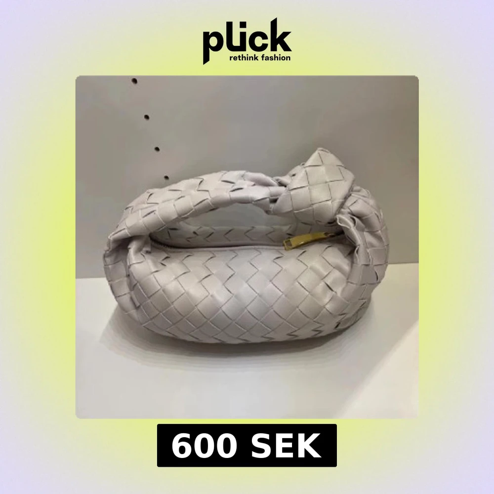 Säljer en snygg vit/grå axelväska med flätad design likande bottega. Väskan har en kort axelrem och stängs med dragkedja i guld. Perfekt för att lyfta din outfit med en trendig accessoar.