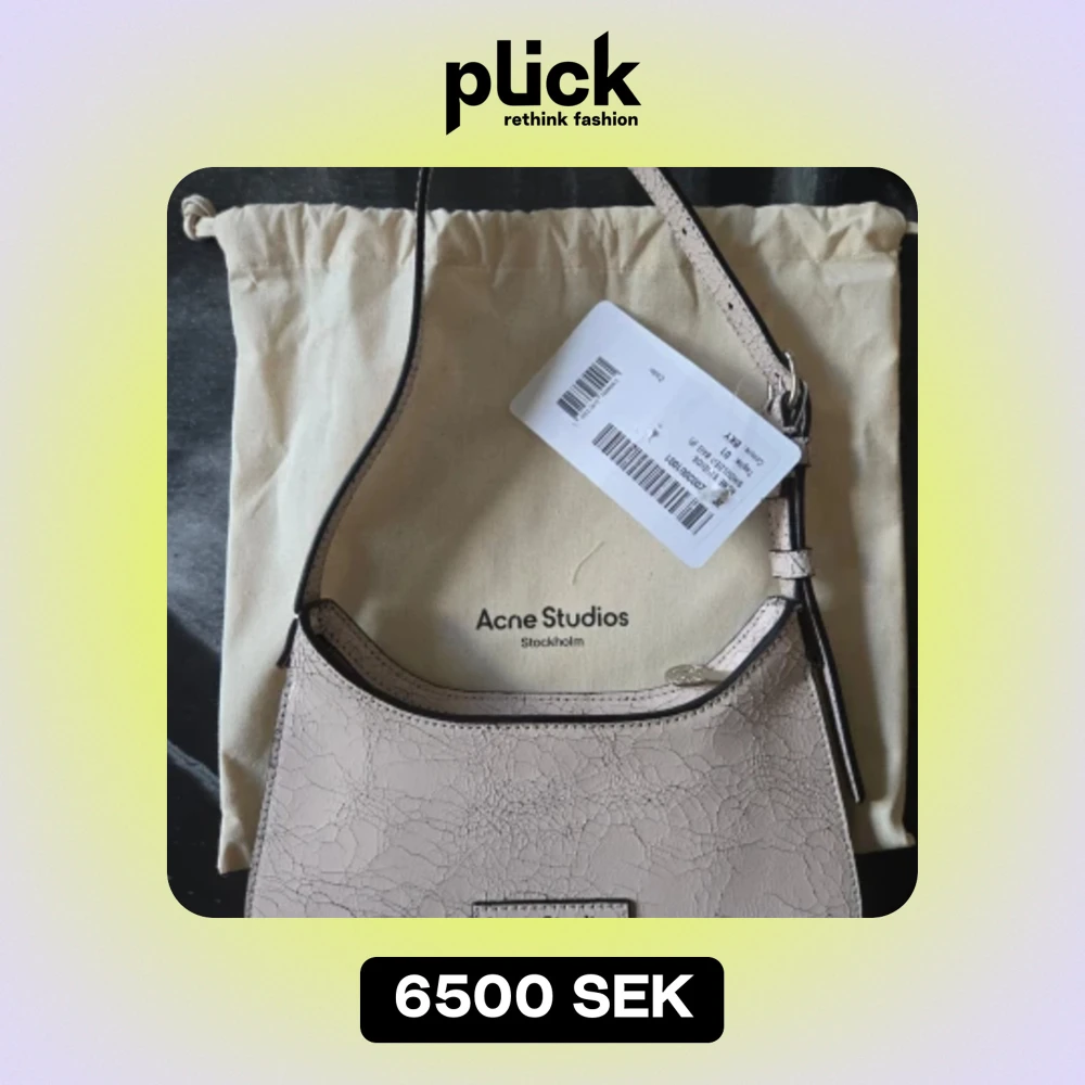 Aldrig använd Acne Studios Platt Micro axelväska i pastel pink. Väskan har en unik krackelerad yta som ger den en cool och annorlunda look. Den är gjord i skinn och har en praktisk dragkedja upptill. Nypris 8300kr.