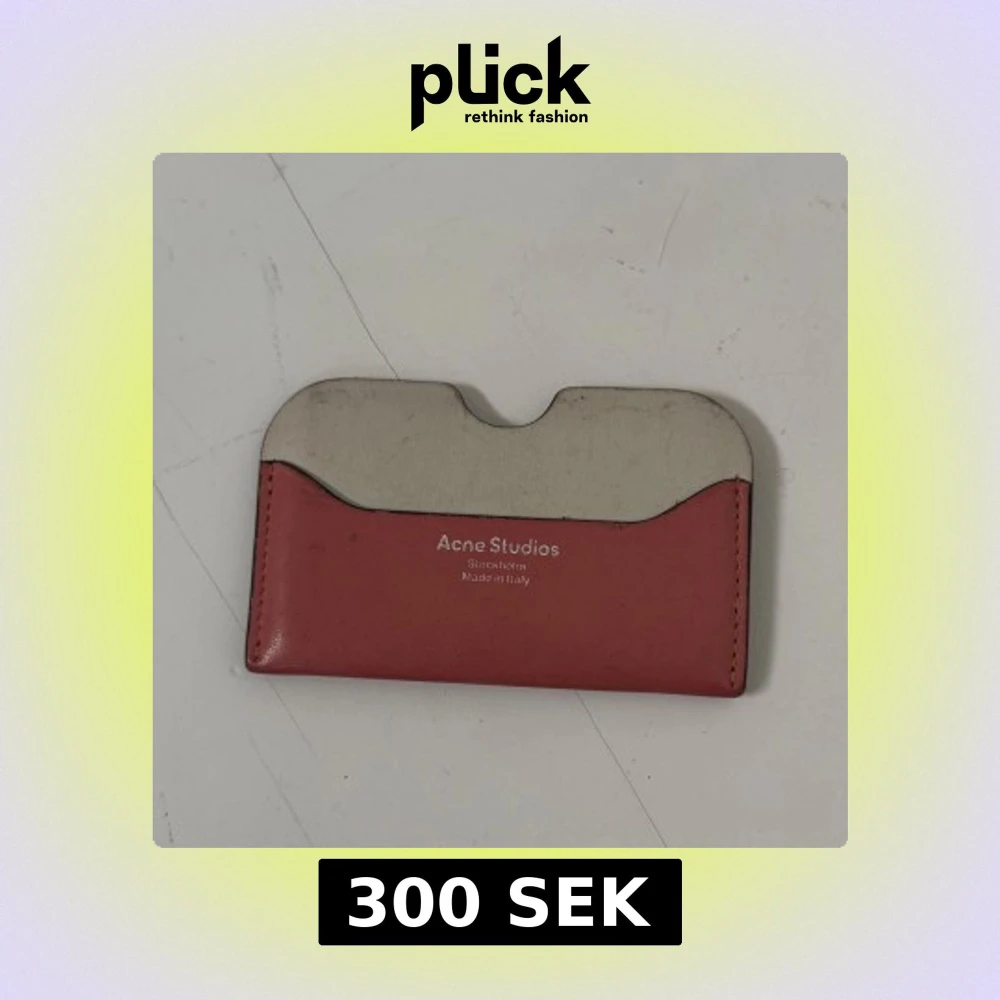 Säljer en stilren korthållare från Acne Studios i flera färger. Framsidan är i beige och rosa, medan baksidan har en kombination av orange och rosa. Tillverkad i Italien, perfekt för att hålla kort och kontanter.