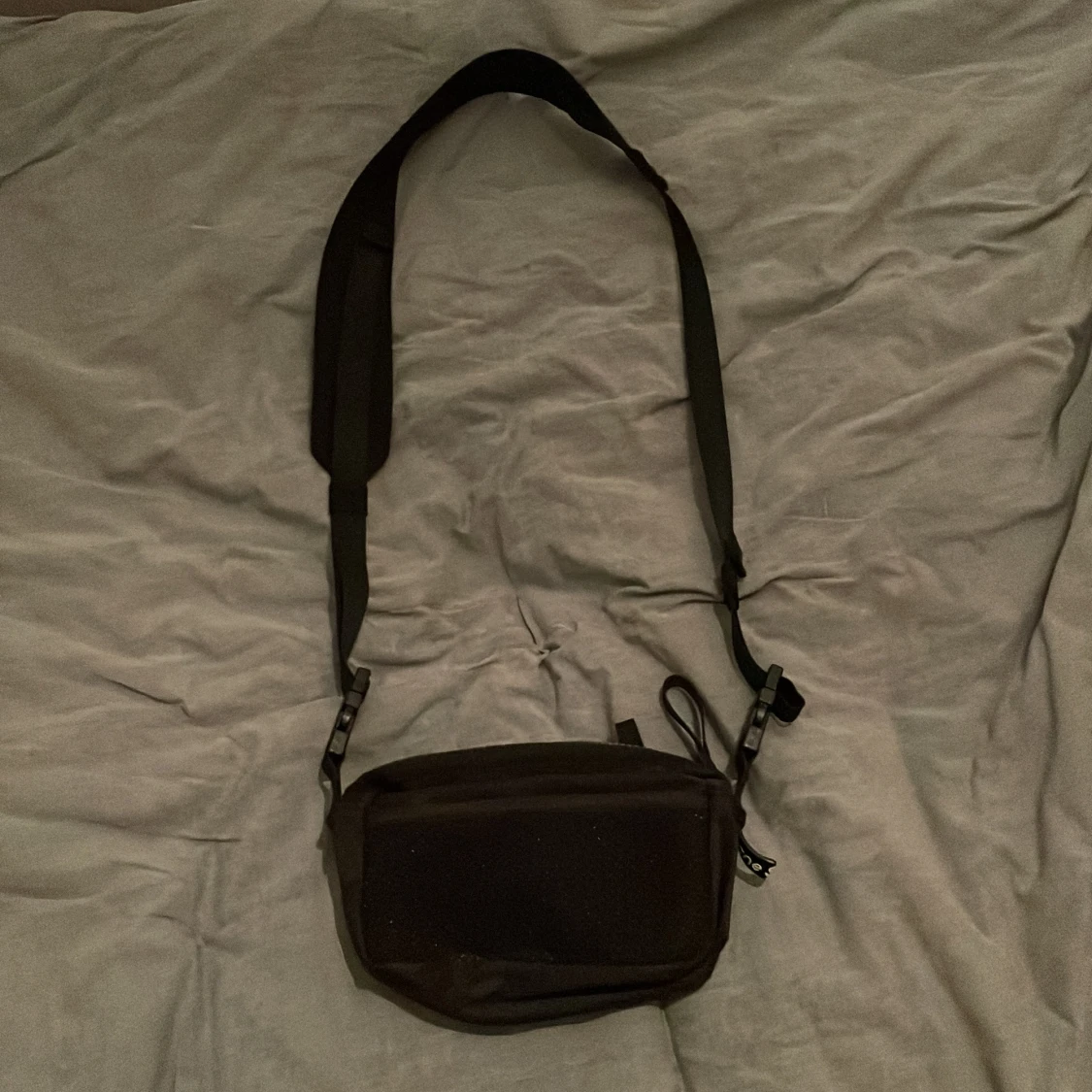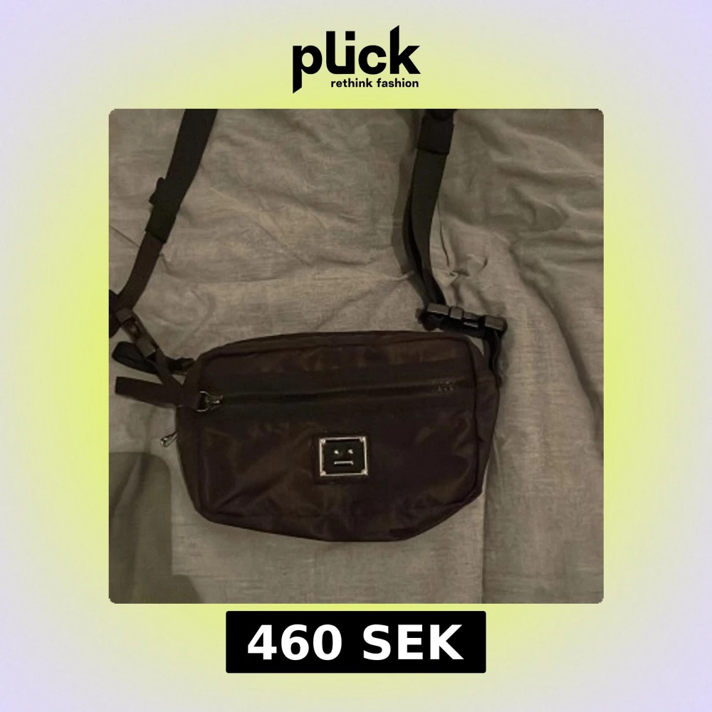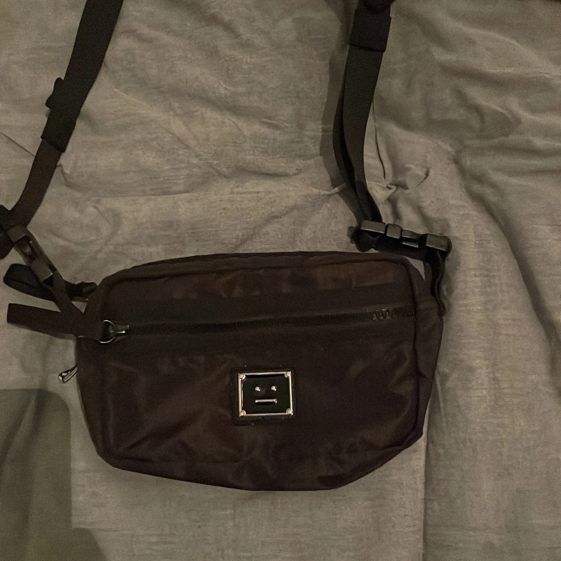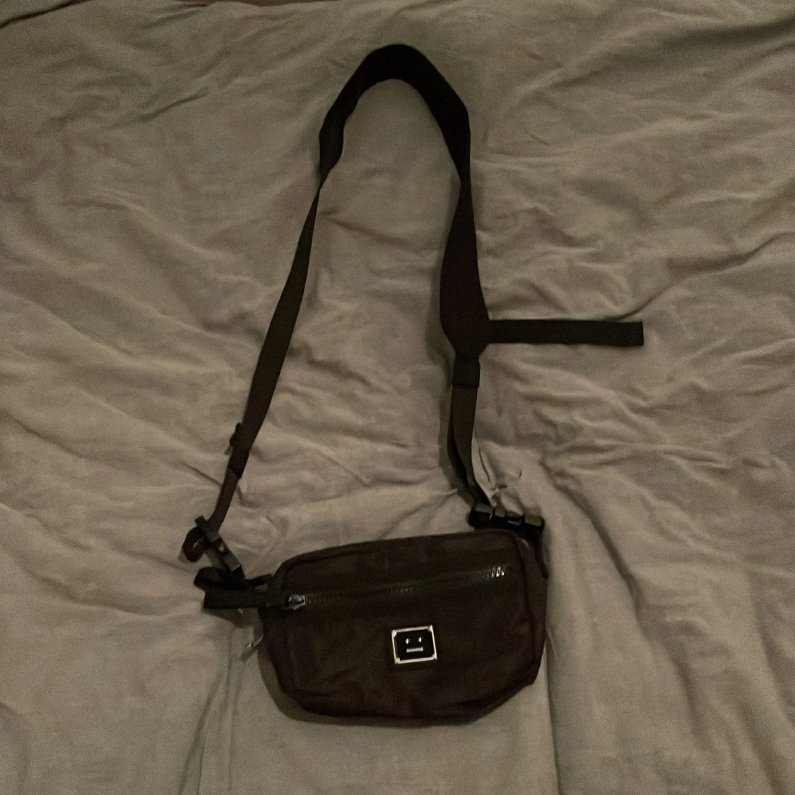 Säljer en svart axelväska från Acne Studios med justerbar rem och dragkedja framtill. Perfekt storlek för det viktigaste och enkel att bära crossbody.
