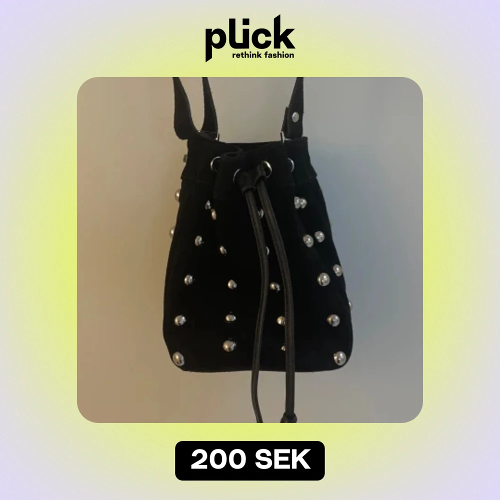Svart handväska i mocha med runda nitar. Går att dra ihop med bandet. Från märket Adax! 🖤