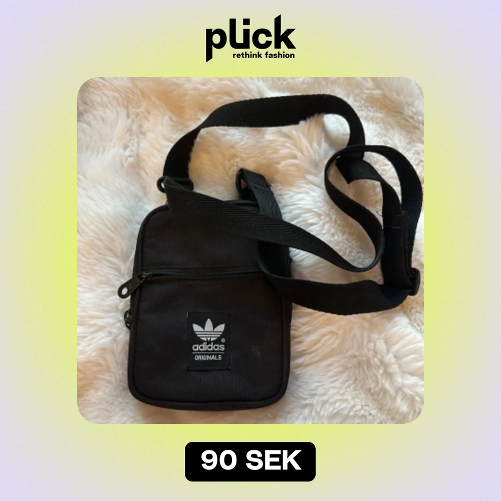 En svart Adidasväska i bra skick. Man kan typ ha mobilen och plånboken och passar att ha med sig i alla tillfällen. Skriv om intresserad💗