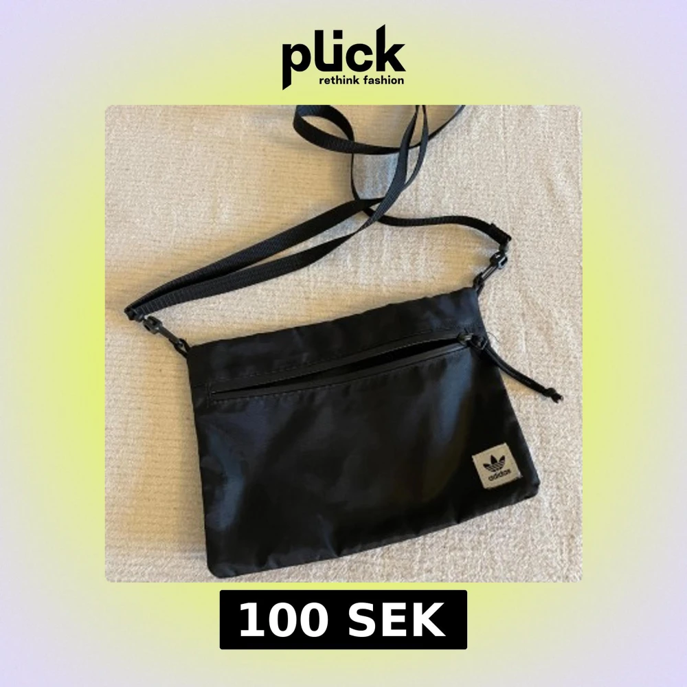 En stilren svart axelväska från Adidas med justerbar rem och dragkedja framtill. Väskan har en enkel design med Adidas-logga på framsidan och text på baksidan. Perfekt storlek för mobil, plånbok och andra småsaker. Tillverkad i slitstark polyester.
