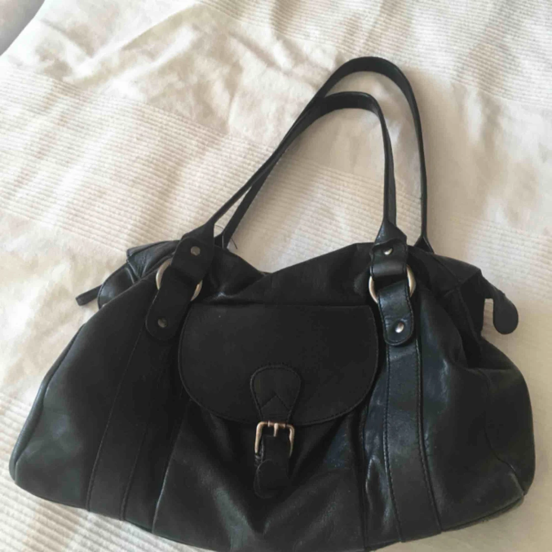 Svart väska i skinn köpt för ca 10 år sen på Åhléns. Bra skick men en innerficka är trasig. Dock inget som stör.