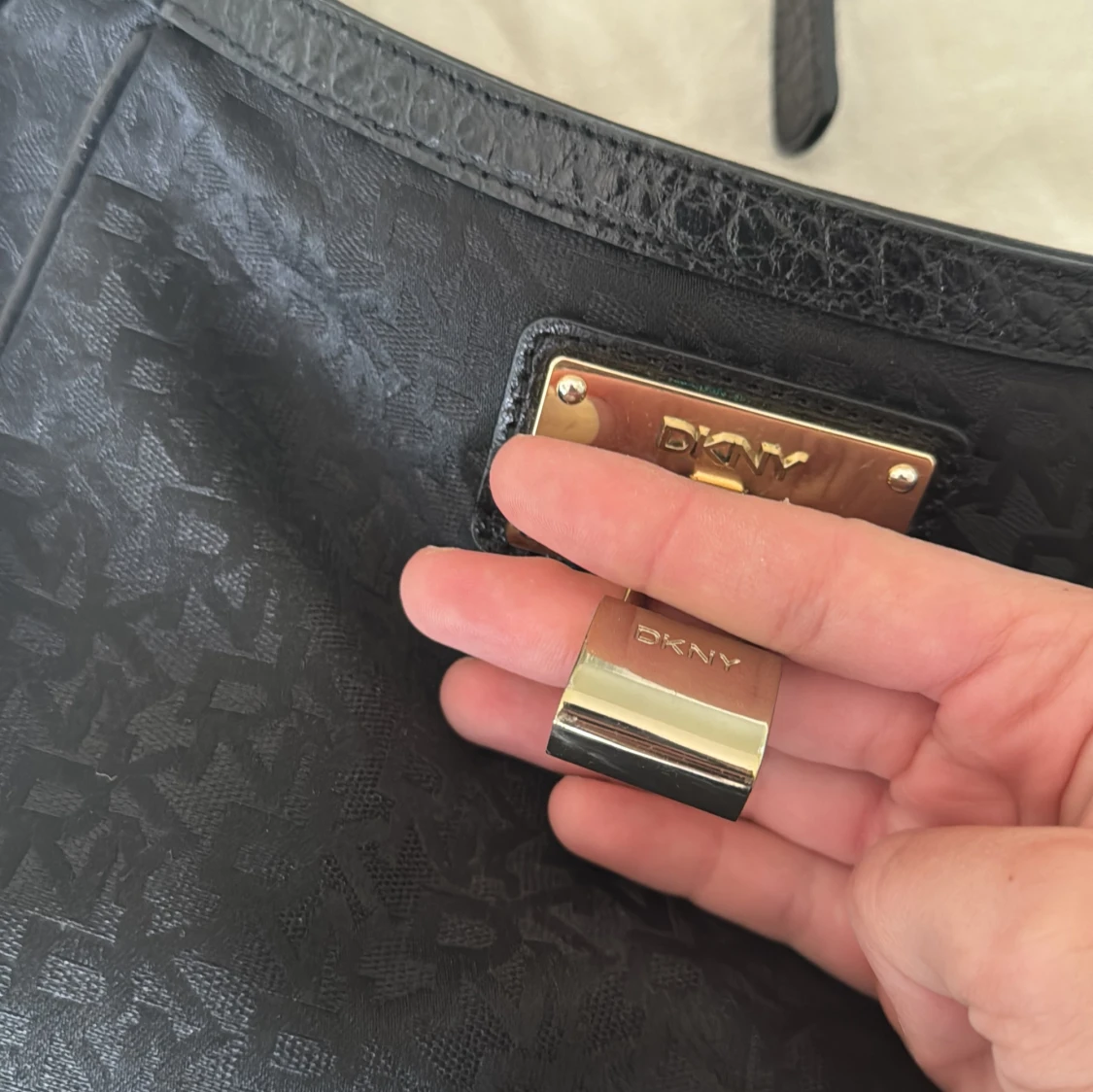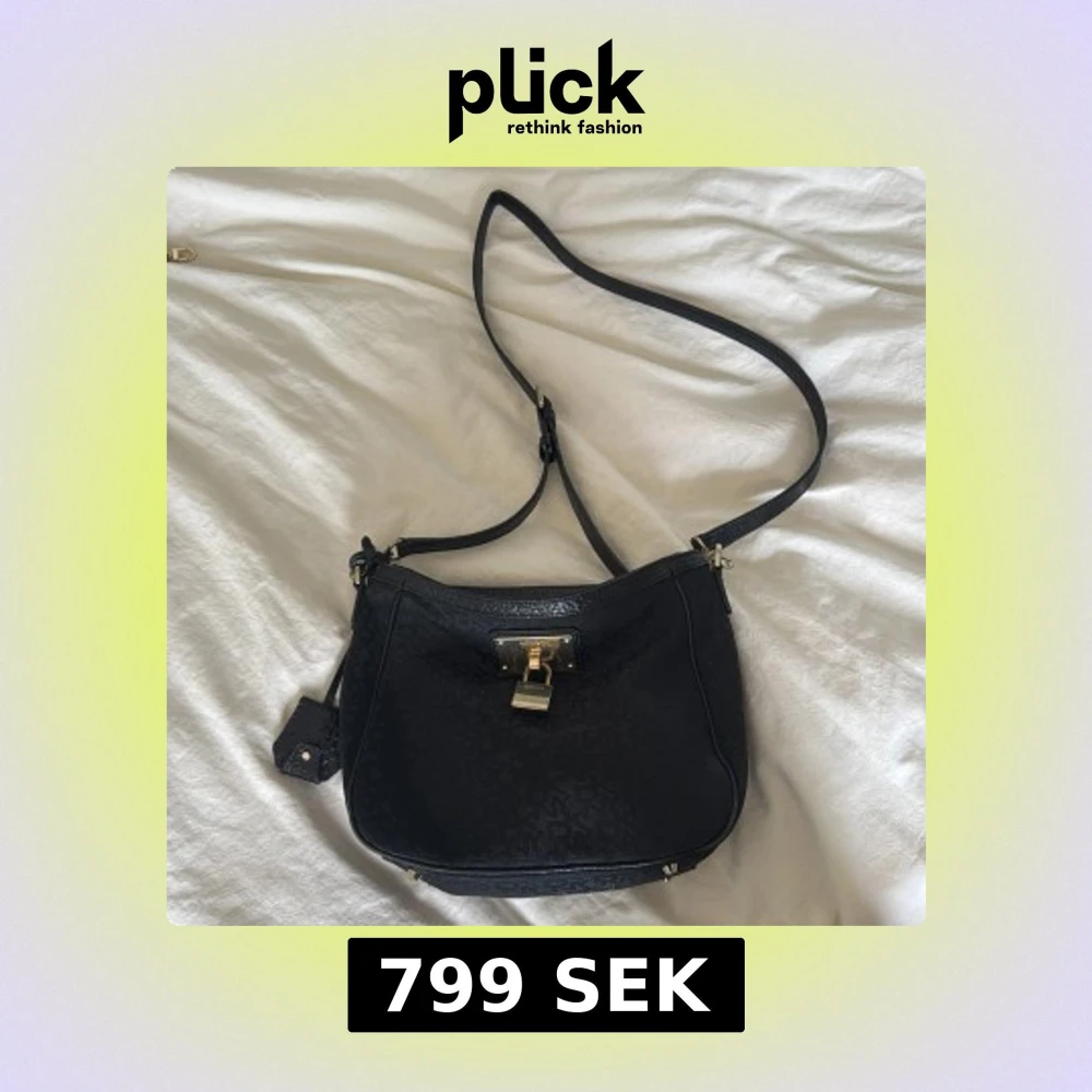 Snygg svart axelväska från DKNY med justerbar rem och guldfärgade metalldetaljer. Nypriset ligget på 2000kr och kvaliteten ger en exklusiv känsla!❣️