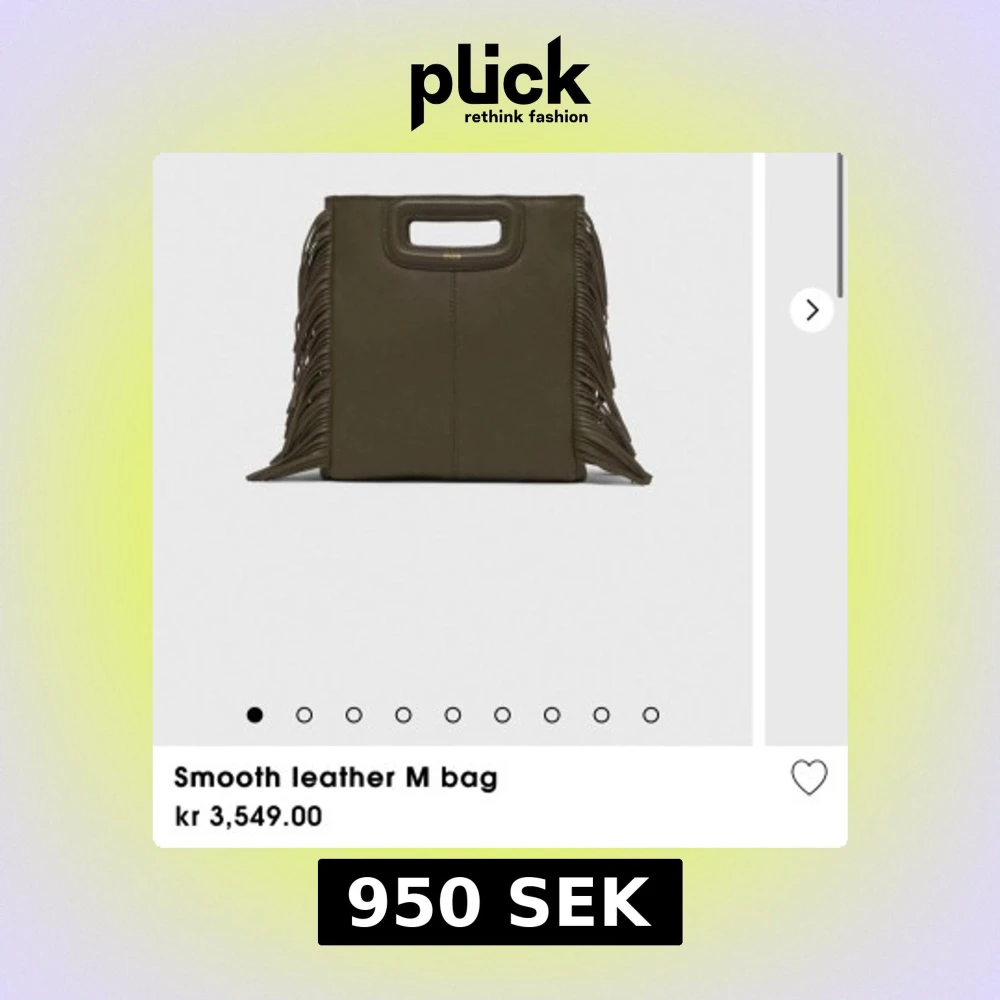 Snygg olivgrön handväska i mocka från maje med coola fransdetaljer på sidorna och inbyggt handtag. Väskan har en stilren, boxig form och minimalistisk design som sticker ut.