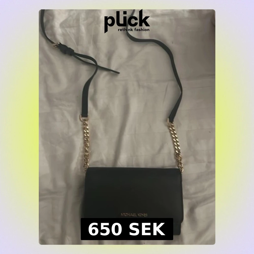 Snygg svart axelväska från Michael Kors i skinn med guldfärgade kedjedetaljer och logga framtill. Passar med allt!!💕💕