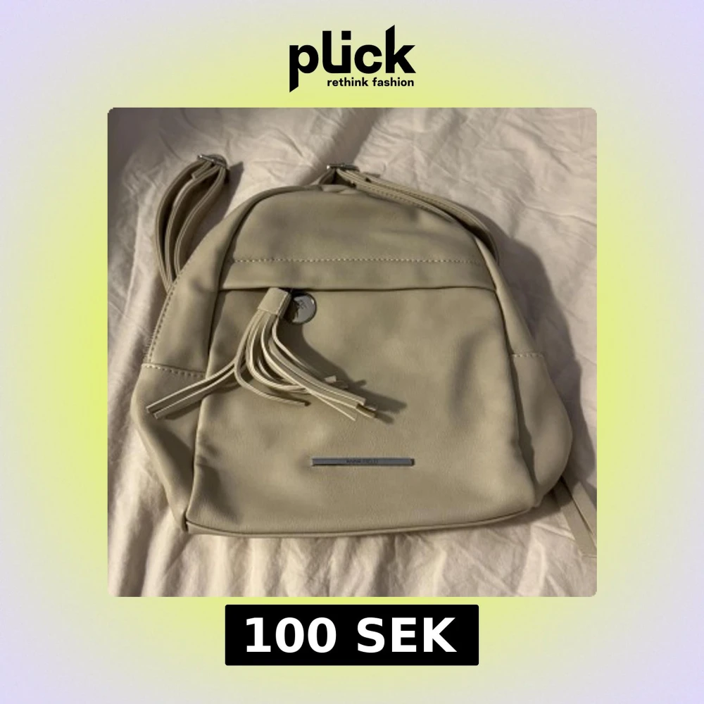 Snygg beige ryggsäck från Anna Field i mjukt syntetmaterial. Väskan har silverfärgade detaljer, dekorativ tofs framtill och dragkedja upptill. Insidan är svartfodrad med innerfack för småprylar. Perfekt storlek för vardagens alla grejer.