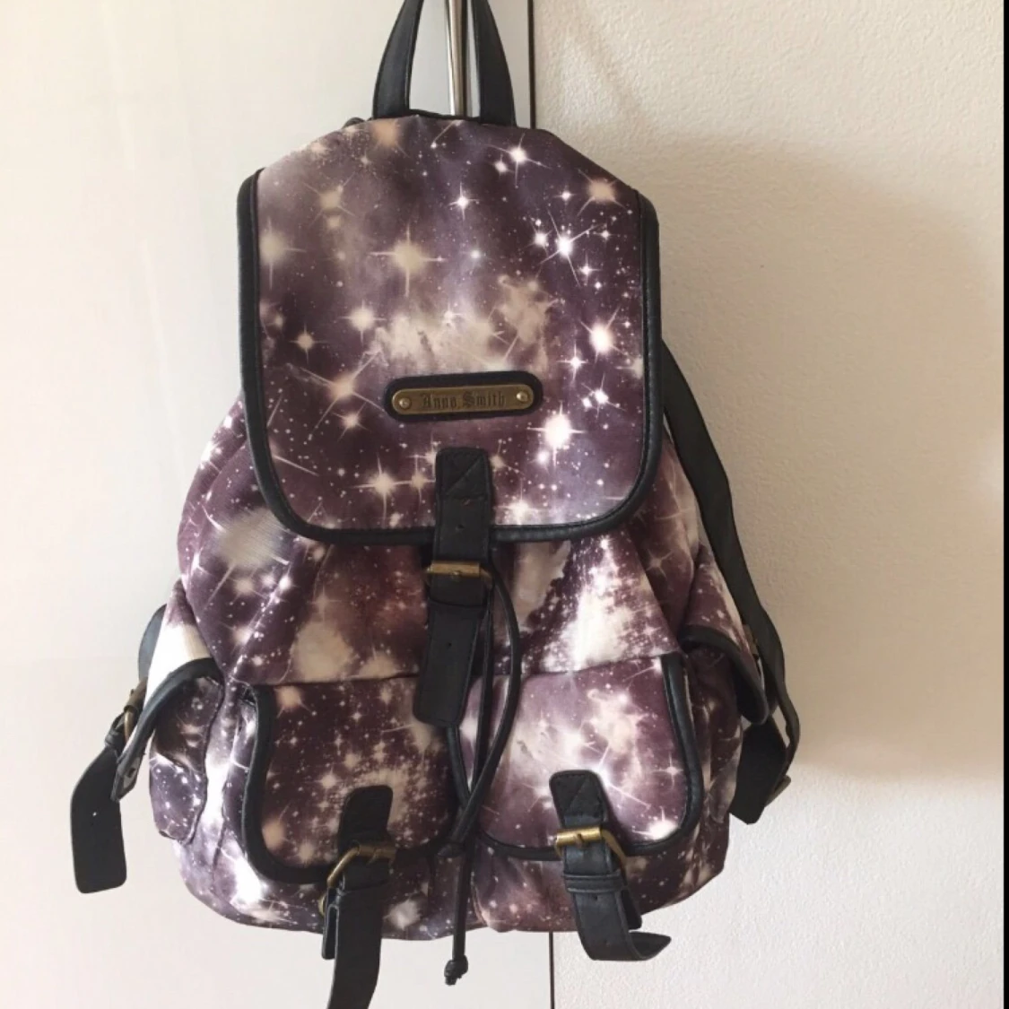 Anna Smith Galaxy ryggsäck, är lite trasig längst ned till vänster men annars bra kvalitet