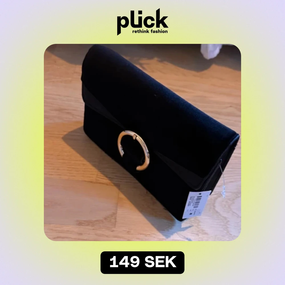 Svart kuvertväska i sammet material med en guldig detalj, aldrig använd