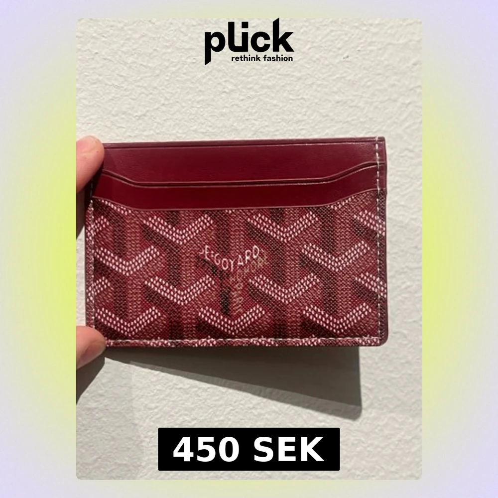 Aldrig använd snygg röd plånbok med grafiska mönster i vitt och vinrött. Plånboken har flera kortfack och är tillverkad i skinn med detaljer i syntet. Perfekt för dig som vill ha något stilrent och lyxigt i fickan.