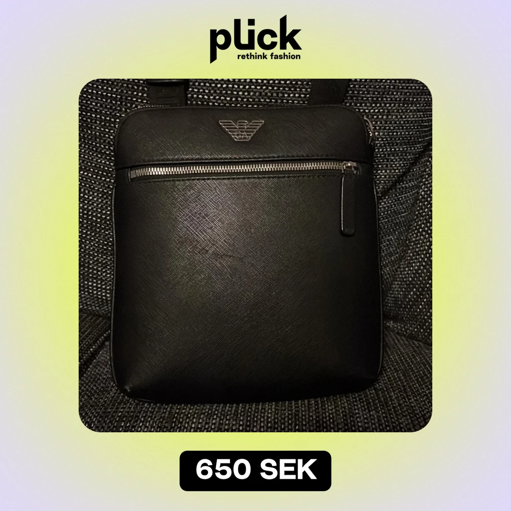 Snygg svart axelväska från Armani i skinn med en stilren design. Väskan har en praktisk dragkedja framtill och ett diskret märke i silver. Perfekt för både vardag och fest!