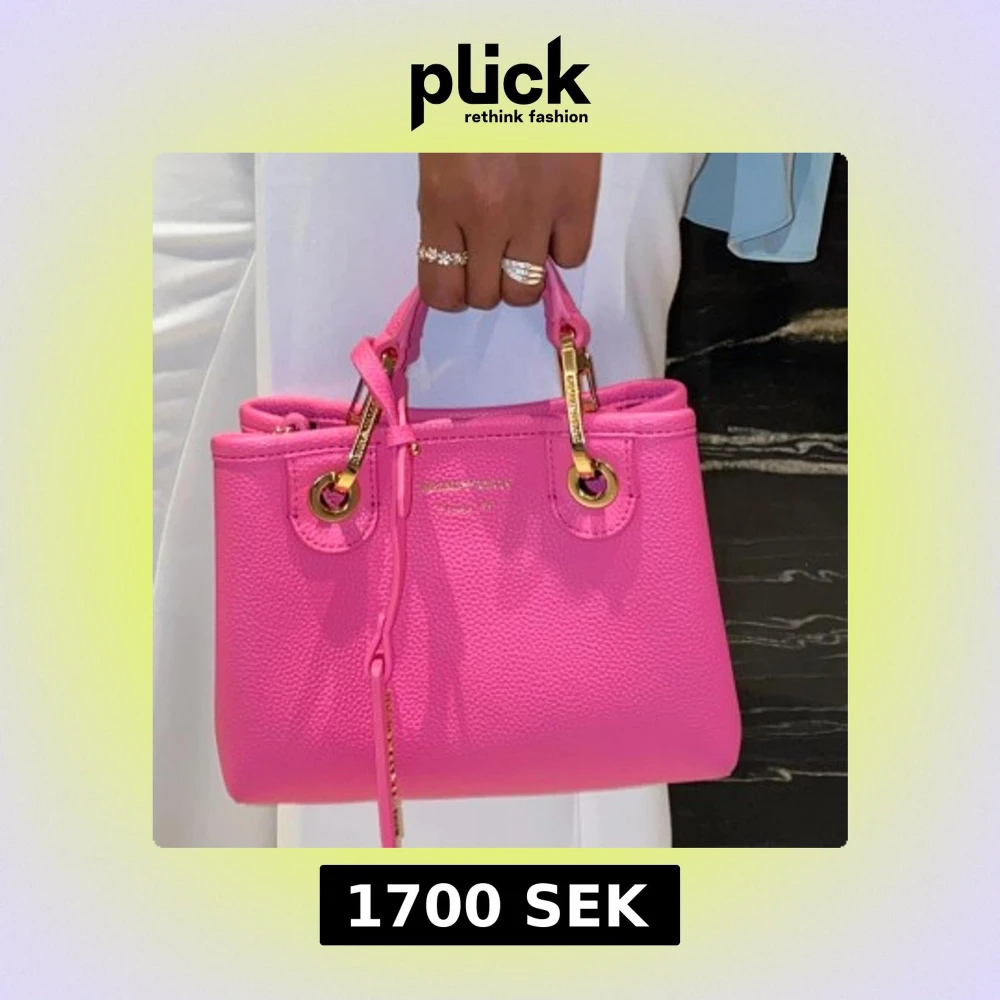 Snygg rosa handväska med gulddetaljer och dragkedja. Perfekt för att ge en färgklick till din outfit. Den har en stilren design med praktiska handtag.