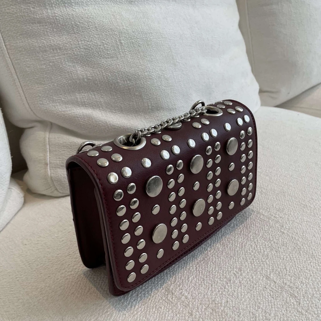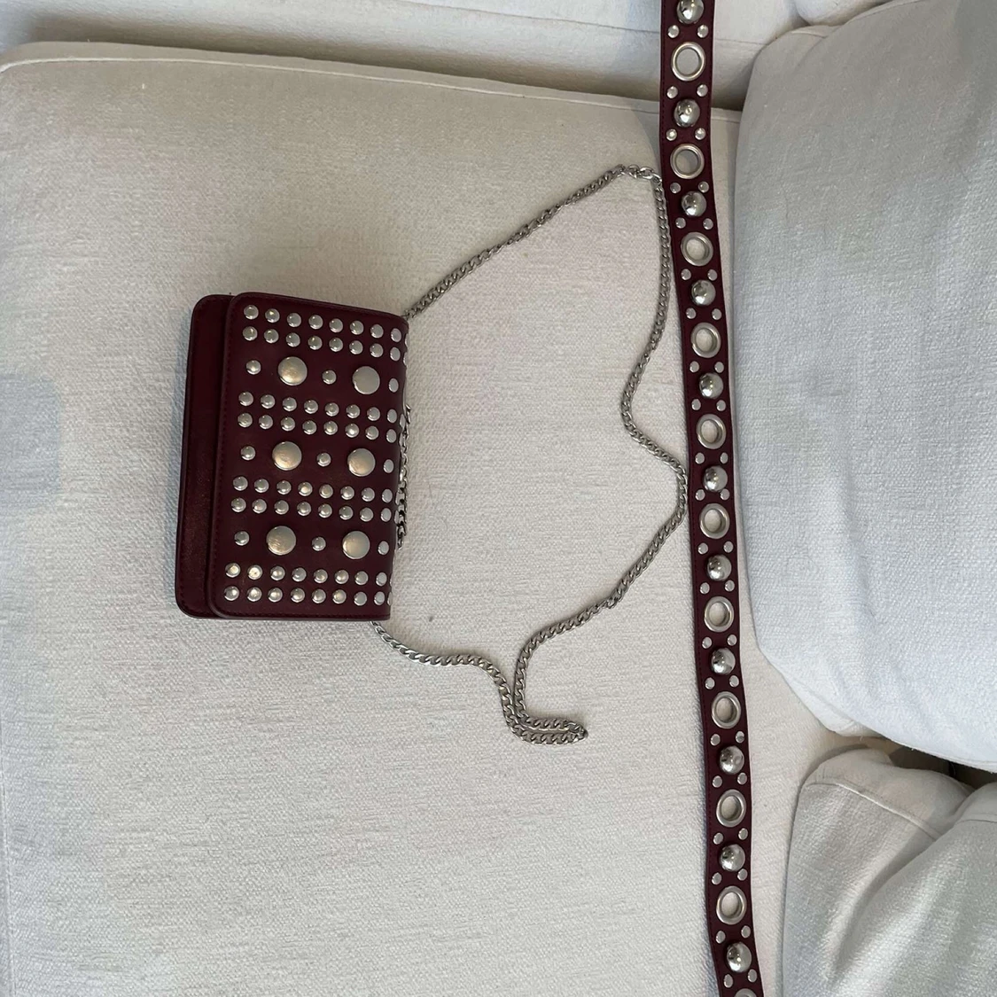 Ascool vinröd väska från asos! Kedja och längre väskband medkommer! Bra skick! Kan både frakta och mötas upp, köpare står isf för frakt!📦