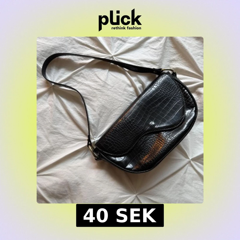 Väska i croco mönster och fina detaljer. Använd och har naggats i ”skinnet” på sina ställen men i övrigt fin.