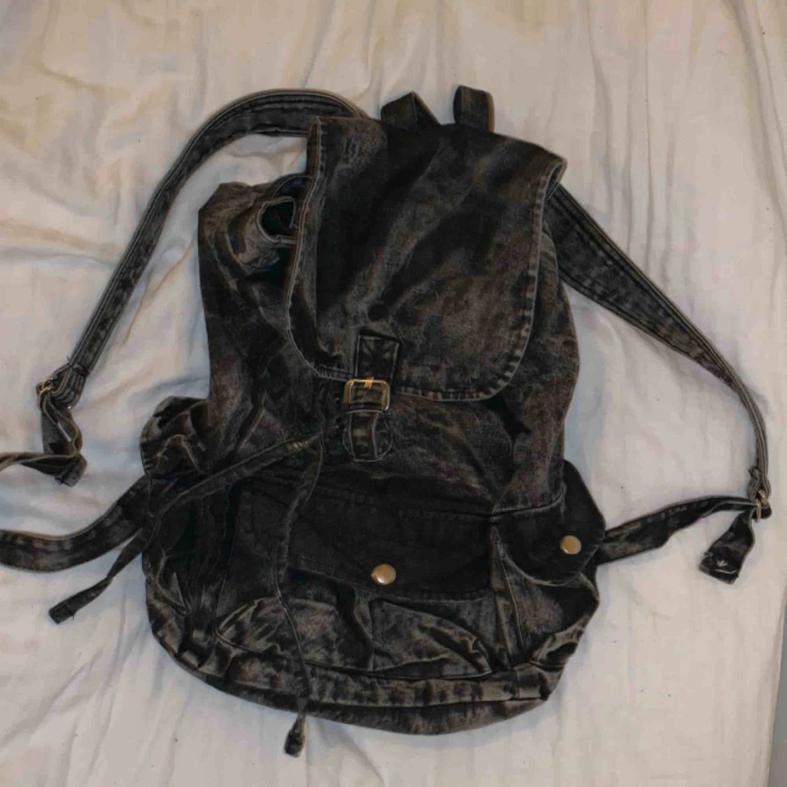 Snygg ryggsäck i jeansliknande material. Har tre fickor på utsidan samt en mindre i själva väskan. 🎒 den är ungefär i ”vanlig ryggsäcks-storlek”. Säljer för 30kr pga använder aldrig, så den är i fint skick också. Frakt tillkommer :)