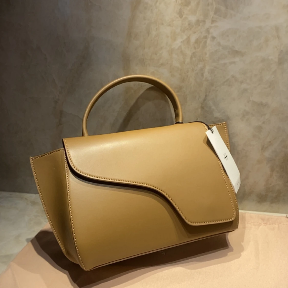 Snygg ljus brun handväska från ATP Atelier i vegetabiliskt garvat skinn. Väskan har stilren design med ett topphandtag, avtagbar axelrem i matchande färg och guldfärgade metalldetaljer. Tillverkad i Italien och perfekt för dig som gillar minimalistisk och modern look.