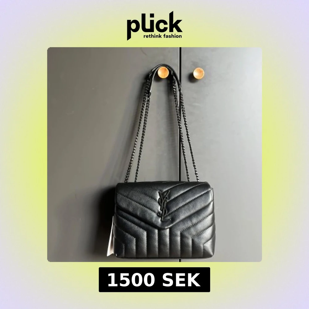 Snygg svart axelväska från Saint Laurent med quiltad design och kedjeaxelrem. Väskan har en elegant YSL-logga på framsidan. Perfekt för att ge din outfit en lyxig touch. Pris kan diskuteras, den är inte äkta!