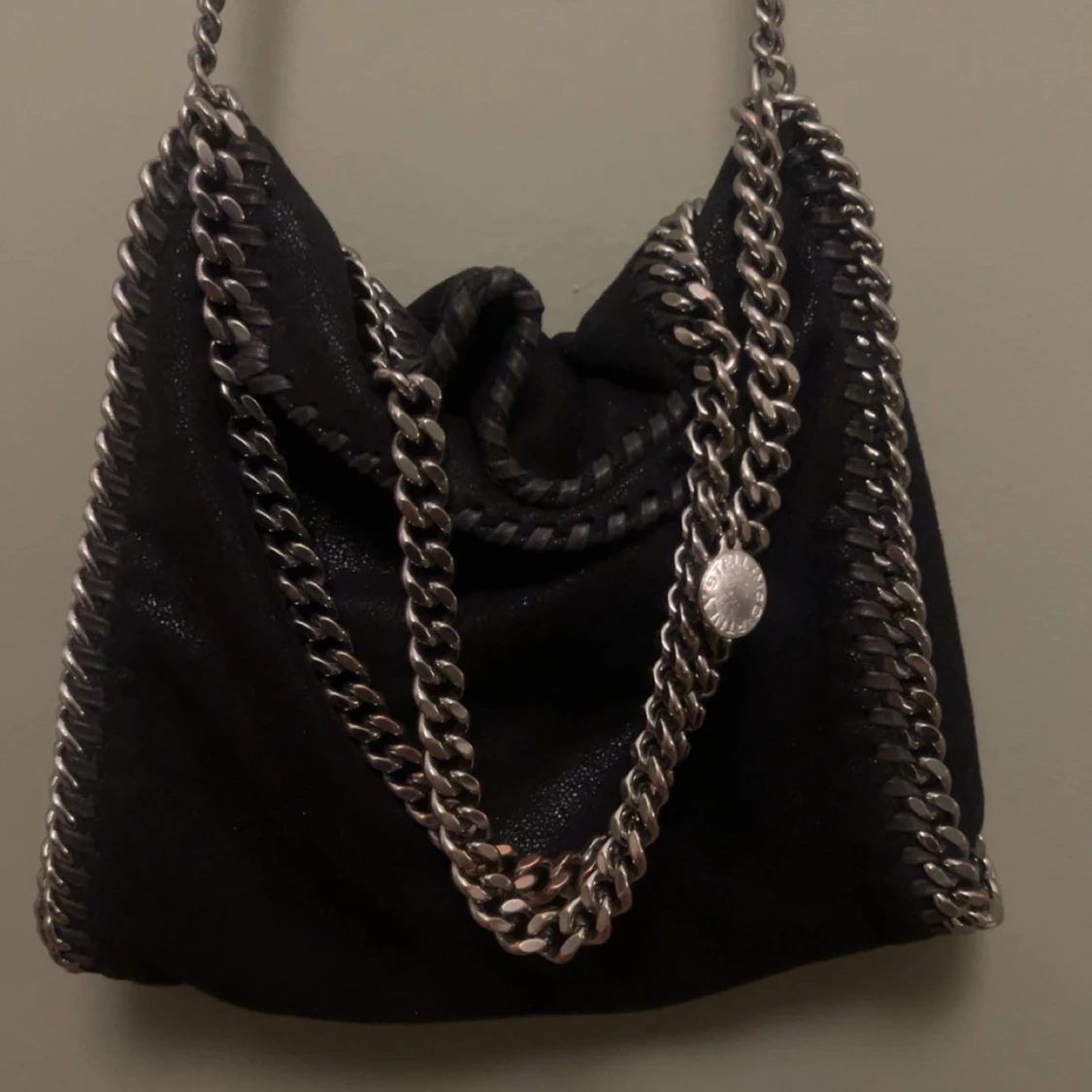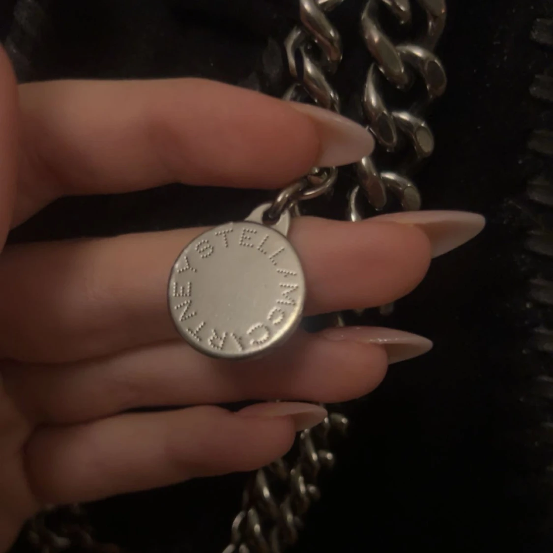 Jättefin väska från Stella McCartney, den är äkta men har tyvärr inget kvitto men det står märket i väskan samt på metall brickan. Ganska använd och lite av kedjan har blivit missfärgad men annars är den väldigt bra kvalitet.