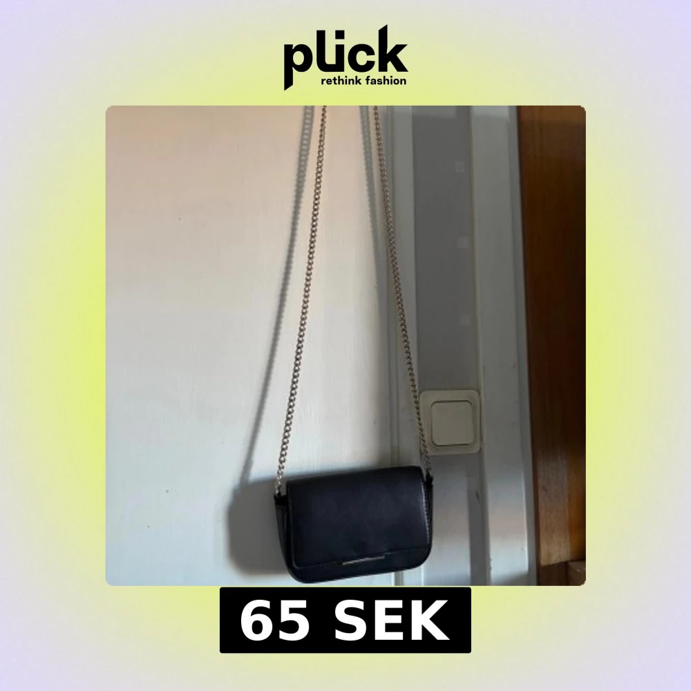 Stilren svart axelväska från H&M med silverfärgad kedjerem. Väskan har ett minimalistiskt uttryck med en liten metall-detalj på locket och magnetlås. Perfekt storlek för det viktigaste och enkel att matcha till olika outfits.