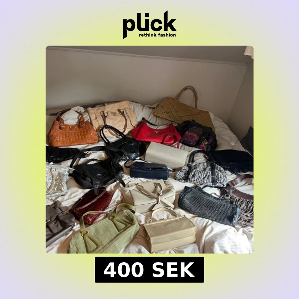 Säljer ett gäng snygga väskor i olika färger och former – allt från klassiska handväskor och axelväskor till en stor shoppingväska i strå. Här finns beige, svart, röd, brun mocka med fransar, rutigt mönster, metallic och grönt tyg. Säljer väskorna från 100-400 kr. Skicka gärna vilken/vilka du vill veta mer av/ ha fler bilder. Om du köper fler än 1 så blir det billigare💞