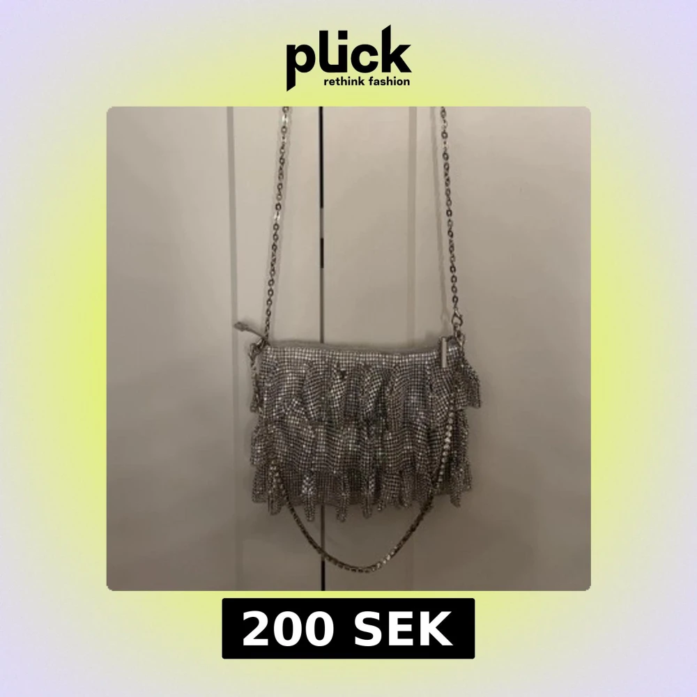 Silvrig väska med små diamant detaljer. Väskan har inga täcken på användning och är som ny. Bredd: 5 cm. Djup: 17 cm. Längd: 22 cm.💗