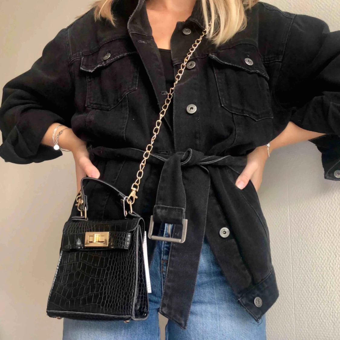 Säljer denna lilla, praktiska väska med krokodileffekt och gulddetaljer🐊 Aldrig använd. Avtagbar guldkedja medföljer. Hör gärna av dig om du är intresserad eller har några frågor🌷