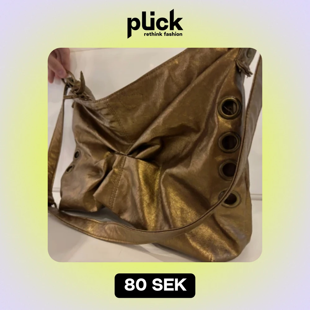 Guldig axelväska, bra med utrymme. Second hand köpt