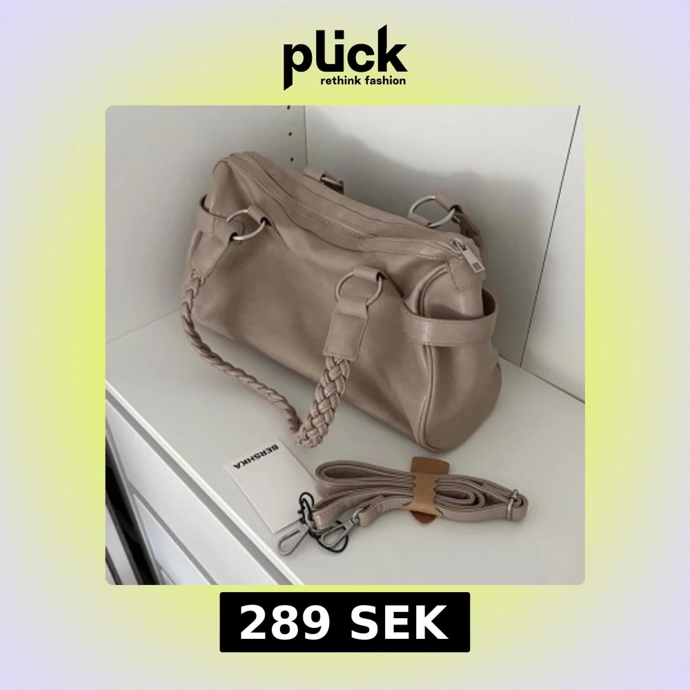 stilren beige axelväska från bershka med flätat handtag och silverfärgade metalldetaljer. väskan har dragkedja upptill och medföljer en lång justerbar axelrem. rymlig och funkar jättebra som skolväska!💕