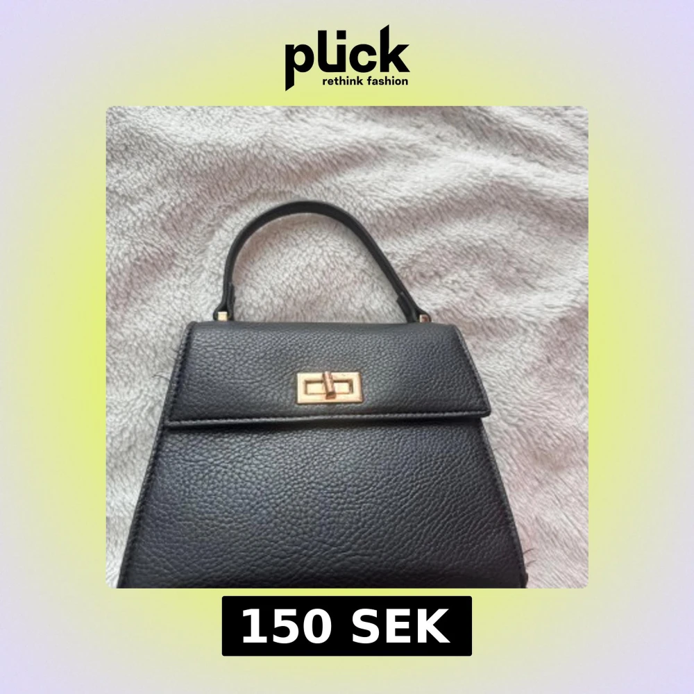Säljer en stilren svart handväska från Gina Tricot med guldfärgat spänne. Väskan har en klassisk form och ett handtag upptill. Perfekt för att bära det viktigaste och passar till många olika outfits.