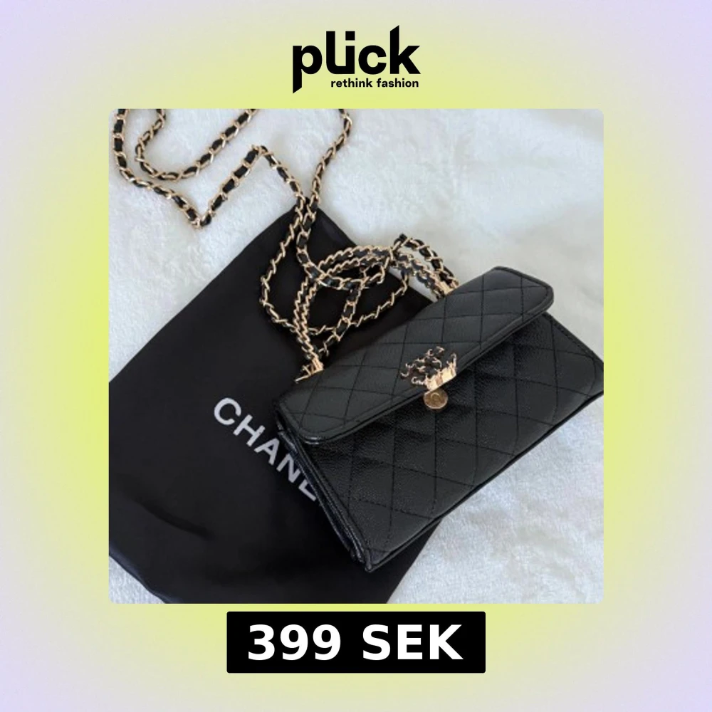 Svart quiltad mindre väska med handtag och axelrem. Gulddetaljer, dustbag medföljer med. Fack till korthållare finns på insidan.