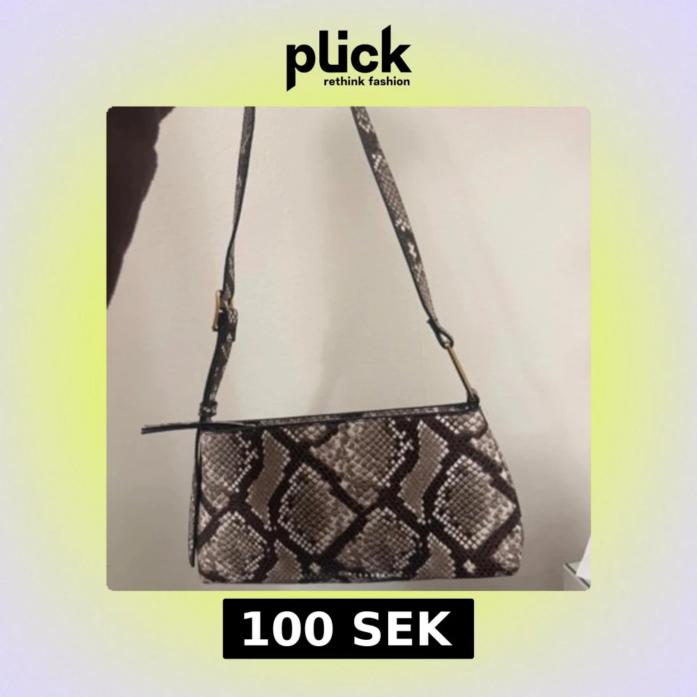 Snygg axelväska från Mango med ormmönstrad yta i bruna och beige toner. Väskan har justerbar axelrem, dragkedja upptill och guldfärgade metalldetaljer. Perfekt storlek för det viktigaste och ger en trendig touch till din outfit. Har inte kommit till användning och är i mycket bra kvalité.