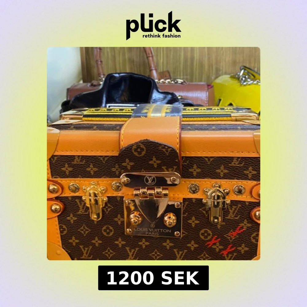 Väska i boxig form med klassiskt monogrammönster i brunt och beige. Väskan har detaljer i ljusbrunt skinn, guldfärgade metalldetaljer och lås framtill. Perfekt för dig som vill sticka ut med en lyxig accessoar.