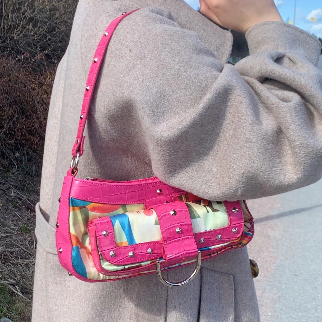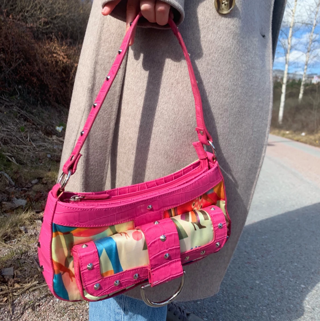 Väska med mycket färg och form och snygga bitar. Perfekt för sommar.