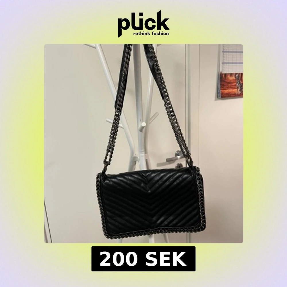 Snygg svart axelväska i quiltat mönster med kedjedetaljer på remmen och kanterna. Perfekt för att ge en stilren touch till din outfit. Väskan har en praktisk storlek och är lätt att bära med sig.