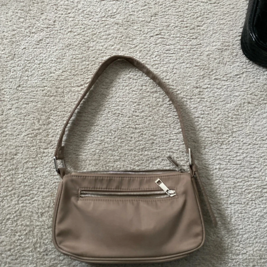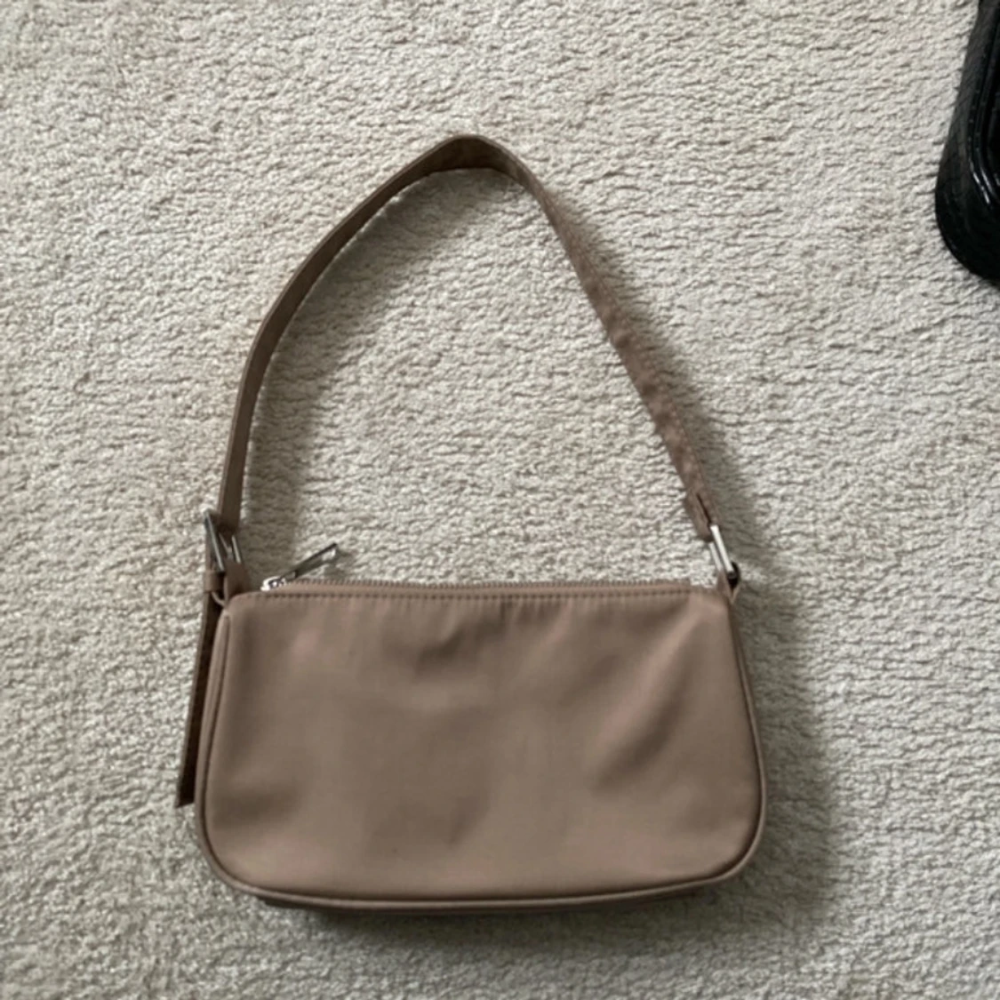 Snygg beige axelväska i syntetmaterial med en praktisk dragkedja framtill. Perfekt för att bära med sig det viktigaste på ett stilrent sätt.
