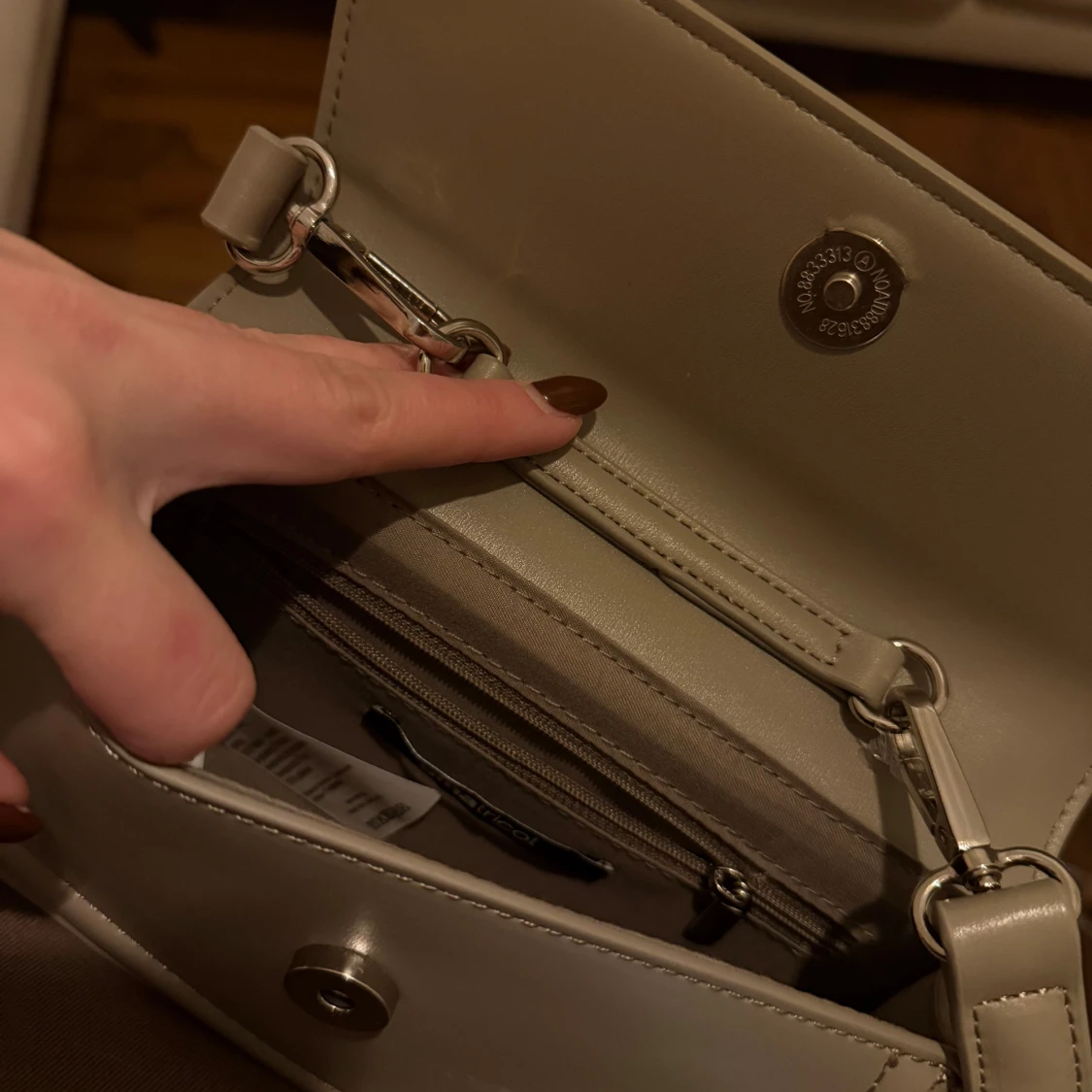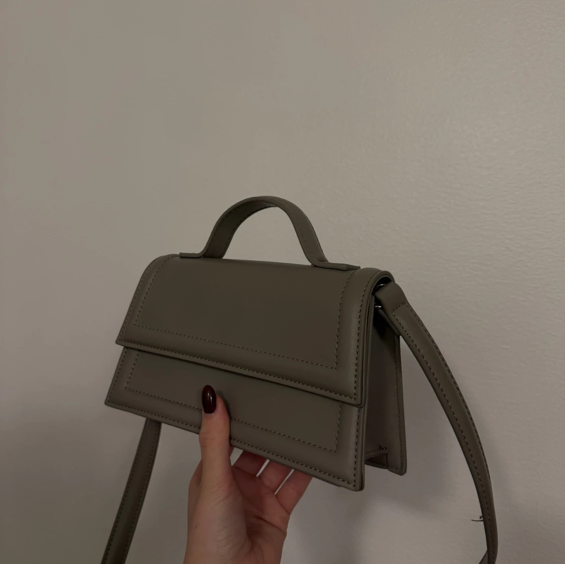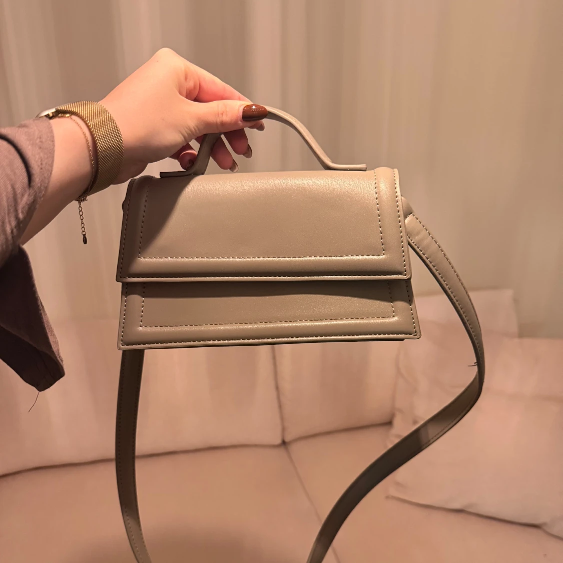 Snygg beige axelväska från Gina tricot med stilren, boxig form och ett praktiskt handtag upptill. Aldrig använd✨