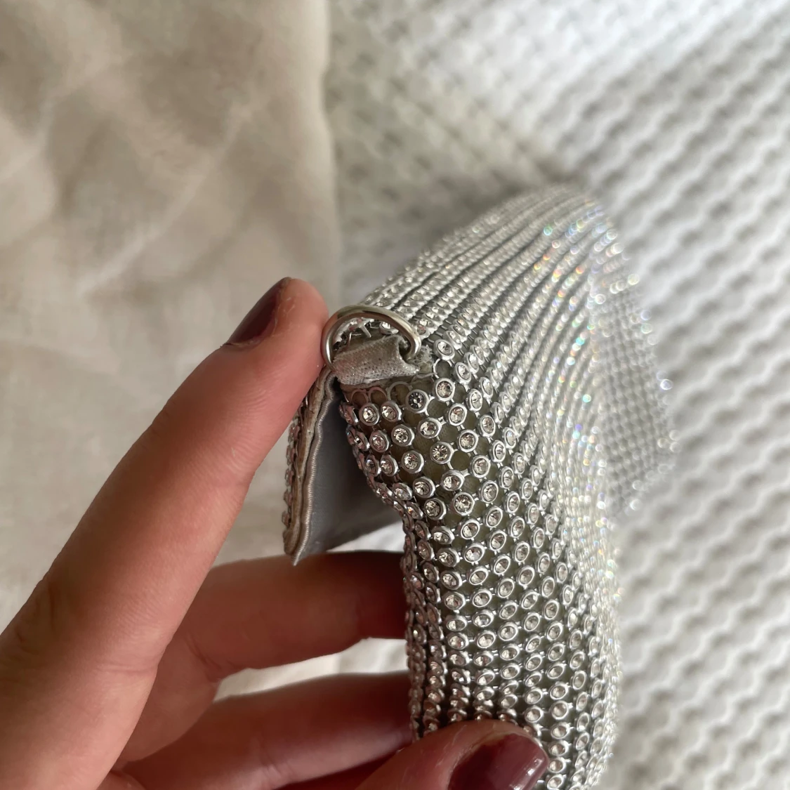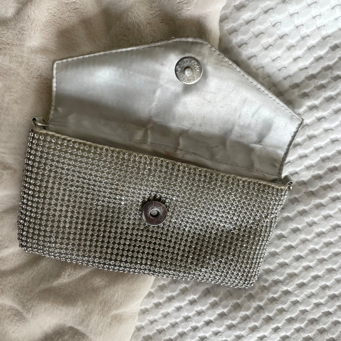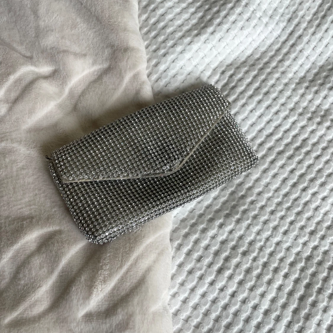 En miniväska i glitter perfekt för fest eller utgång! 😍 Väskan har krokar där man kan sätta fast ett axelband om man vill! Använt skick men det syns inte på utsidan! 🩷