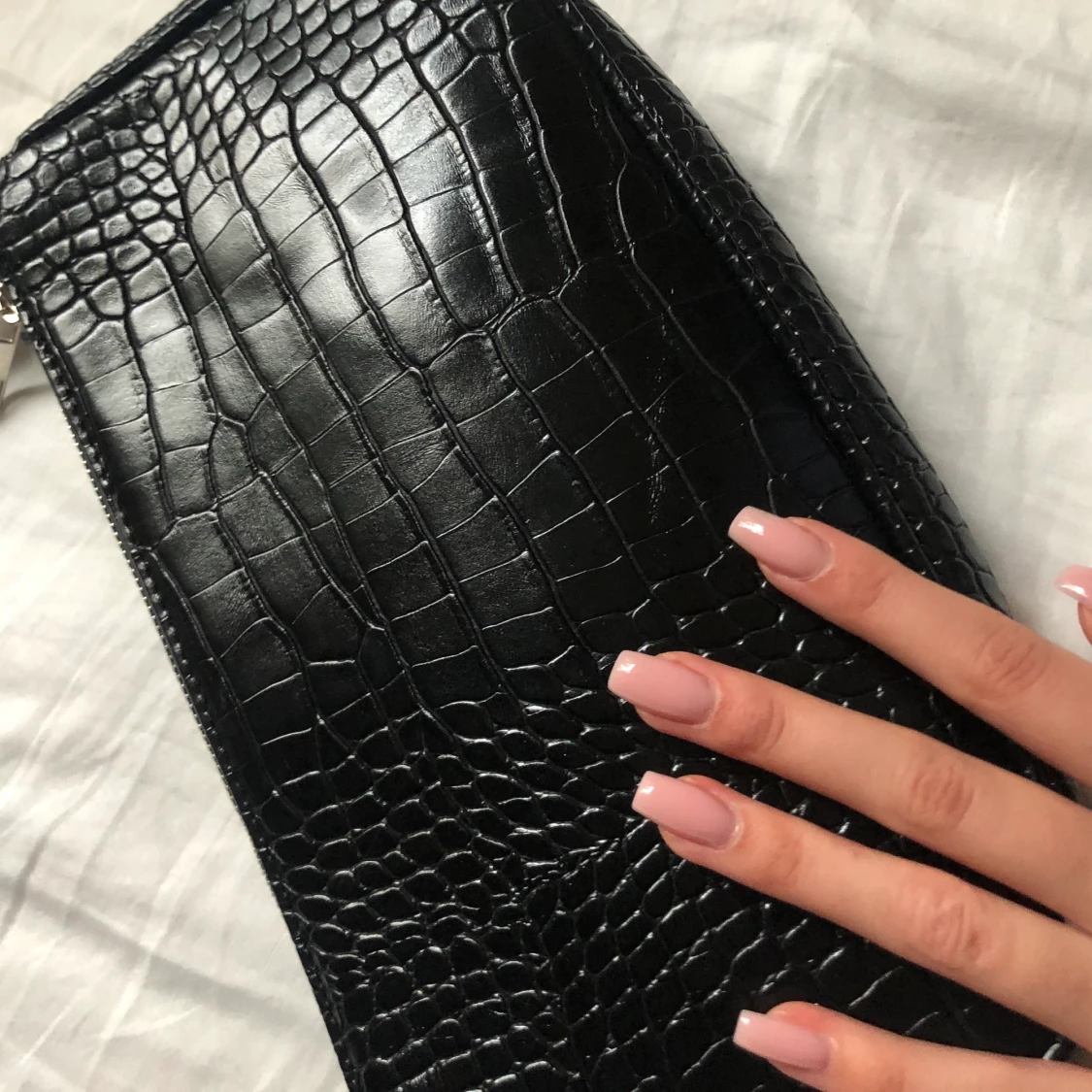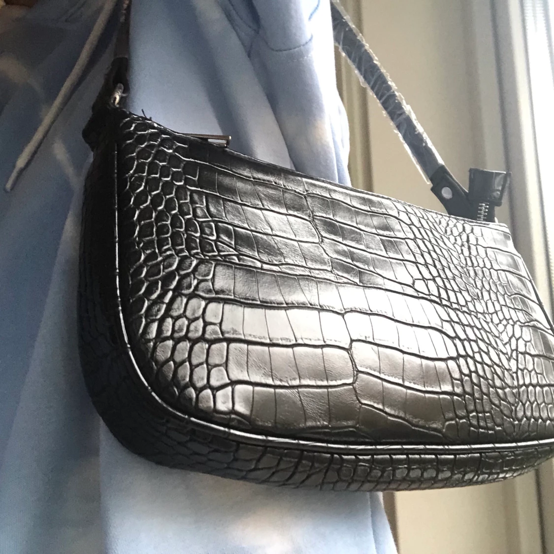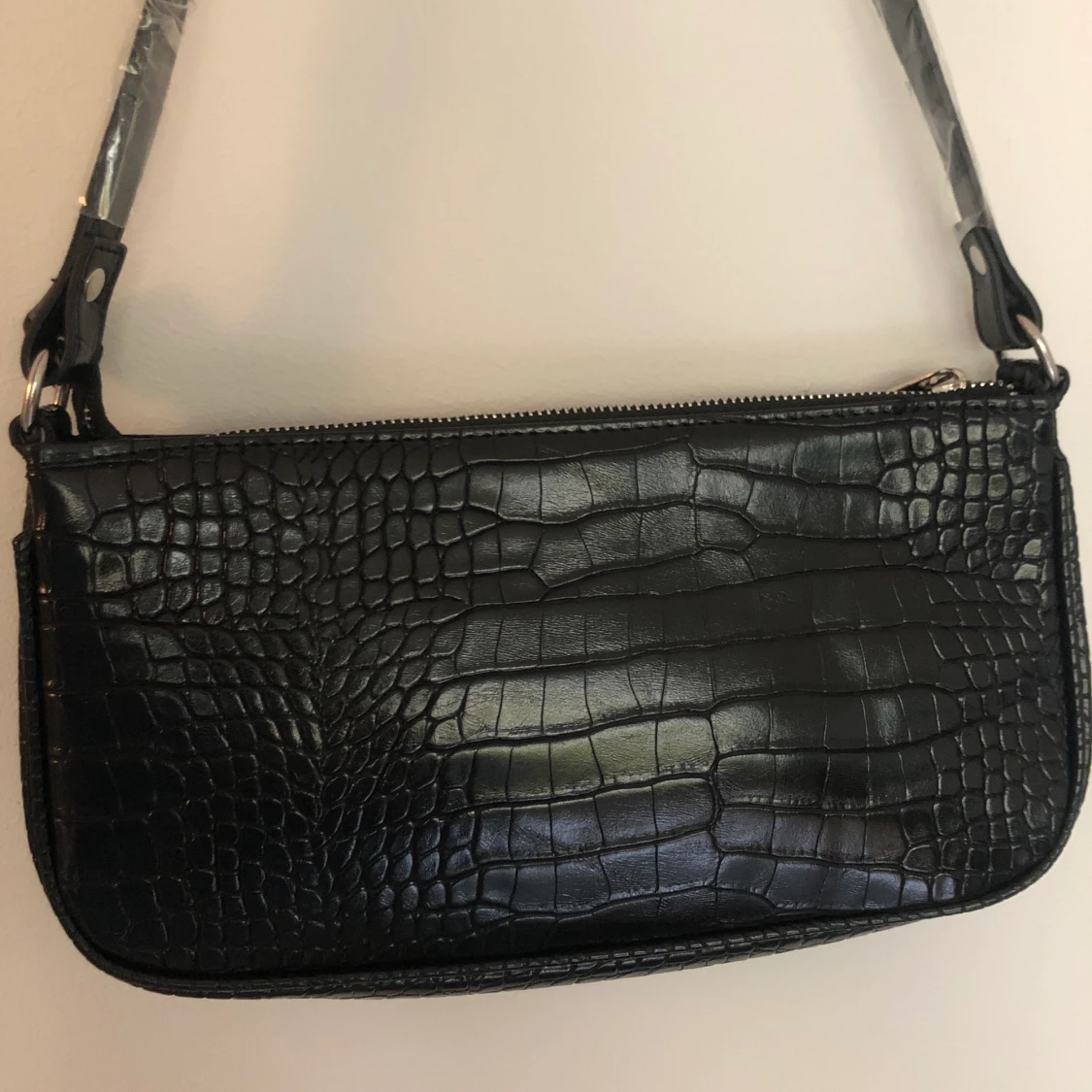 Svart baguettväska krokodilmönster