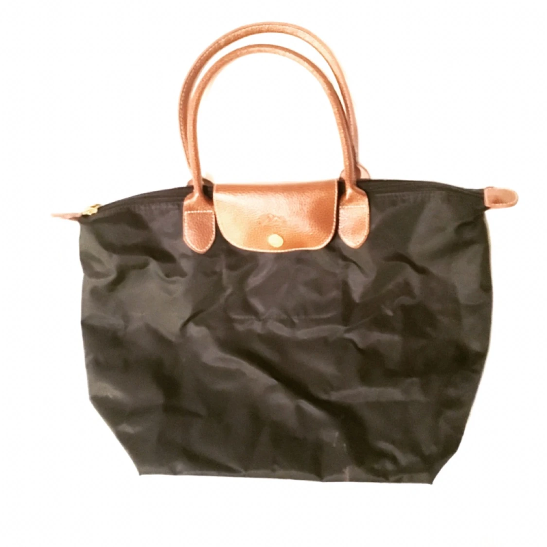Ihopvikbar väska i svart med läderdetalj