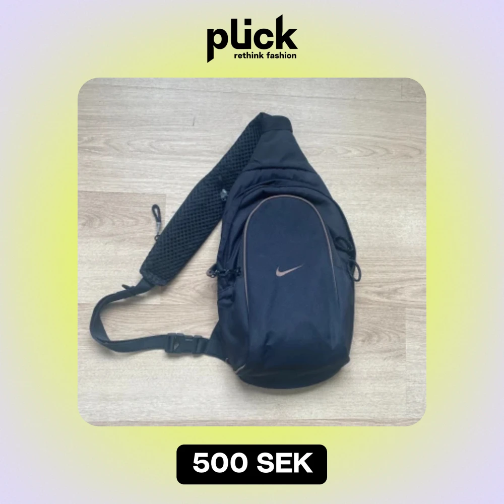 Svart Nike Sling Bag som rymmer 8 liter tror jag. Inga vidare tecken på användning förutom kanske nåt litet litet slitage nånstans. DMa för frågor.