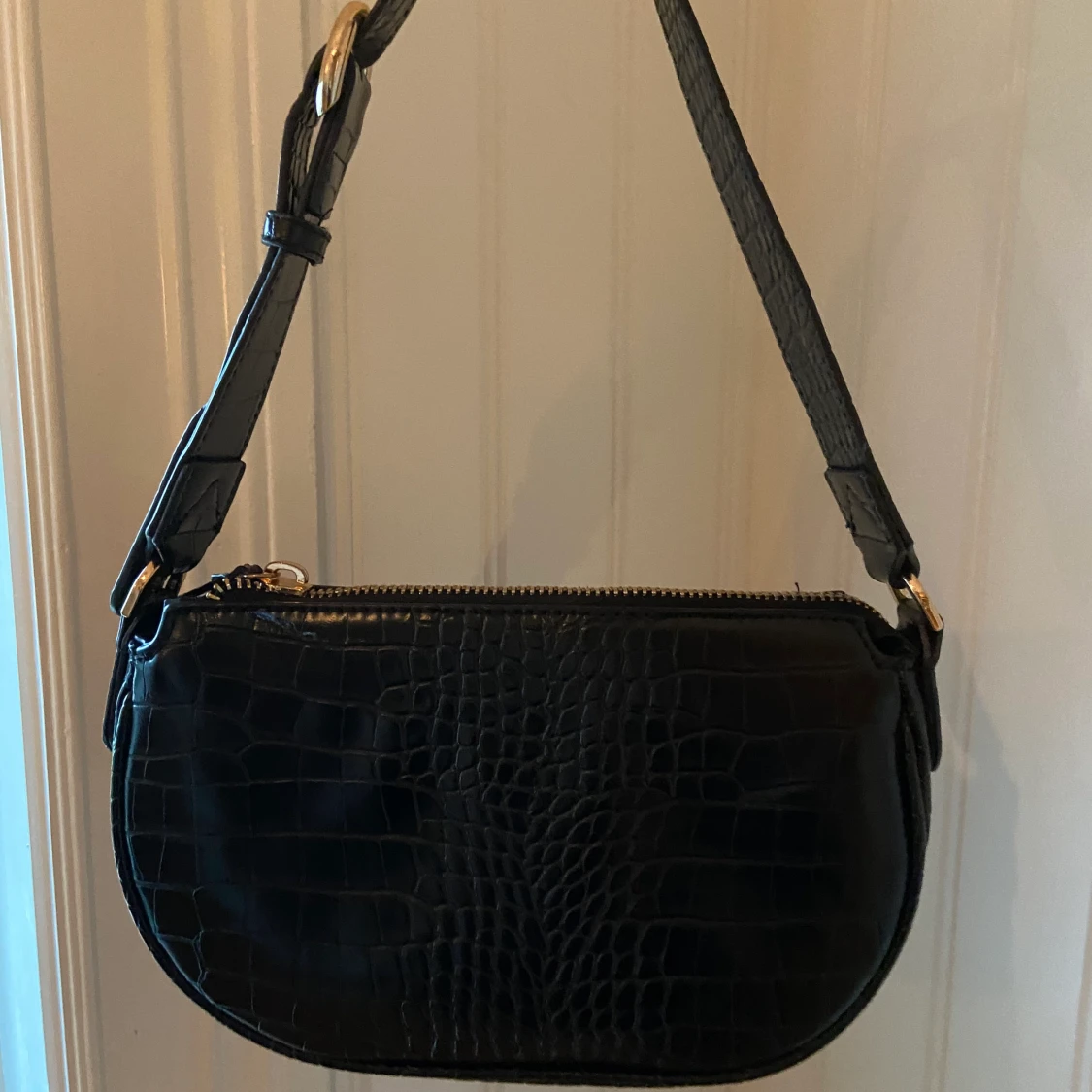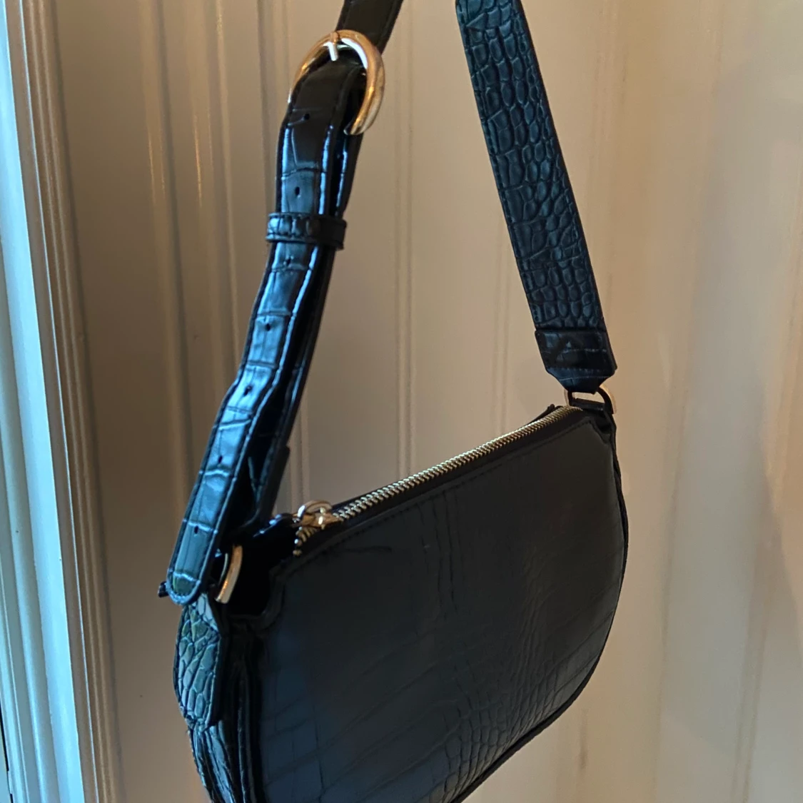Svart Trendig baguette väska i ormskinn. Väldigt bra skick, Kan skickas och mötas upp