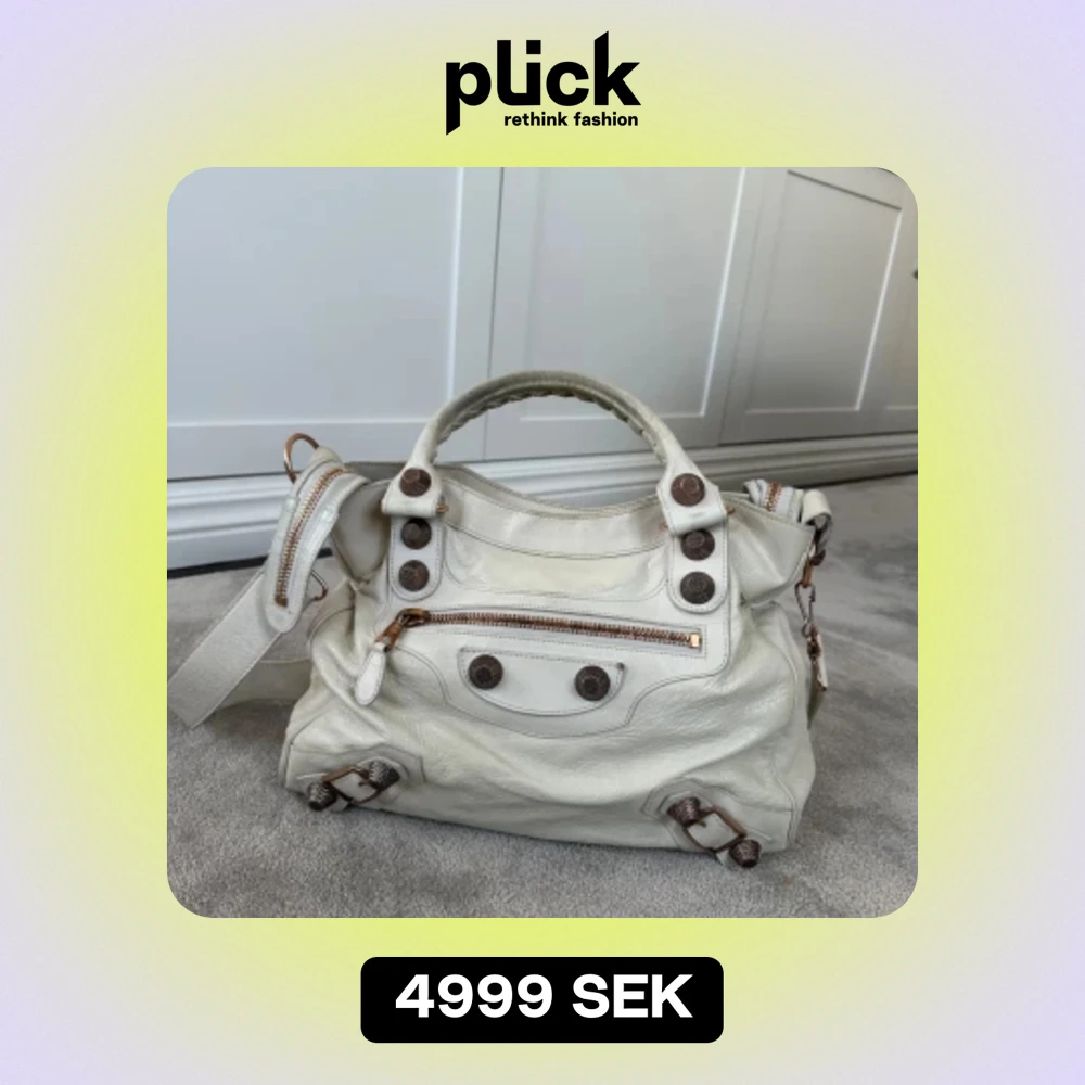 Cremevit Giant Balenciaga Velo väska med rosegold hardware. Visst slitage/fläckar finns, se bilderna. Kommer med dustbag. Mått: B: ca 30 cm H: ca 30 cm
